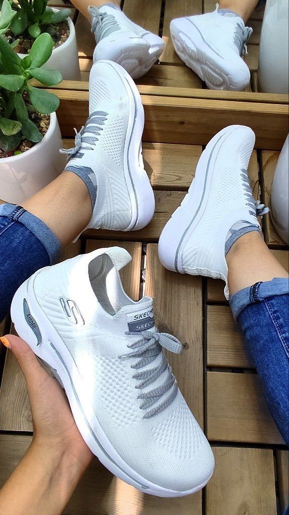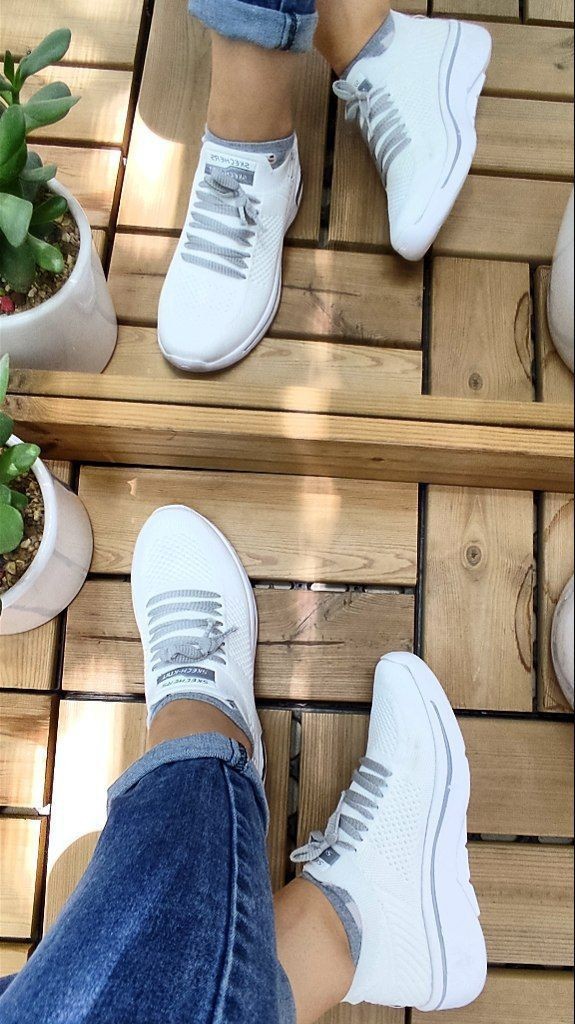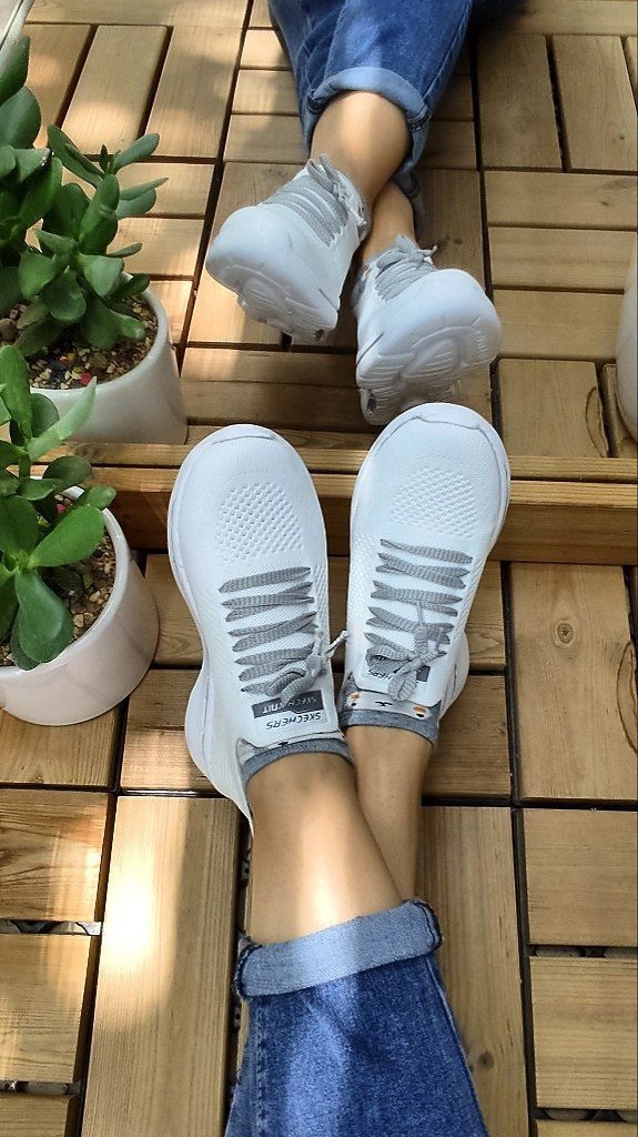 فروش فوق العاده این هفته کفش اسپرت و پیاده روی زنانه دخترانه مدل اسکیچرز سفید تمام کد 4475با ارسال رایگان