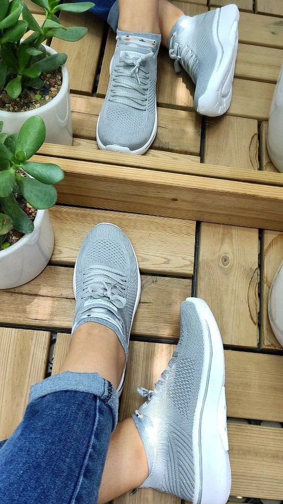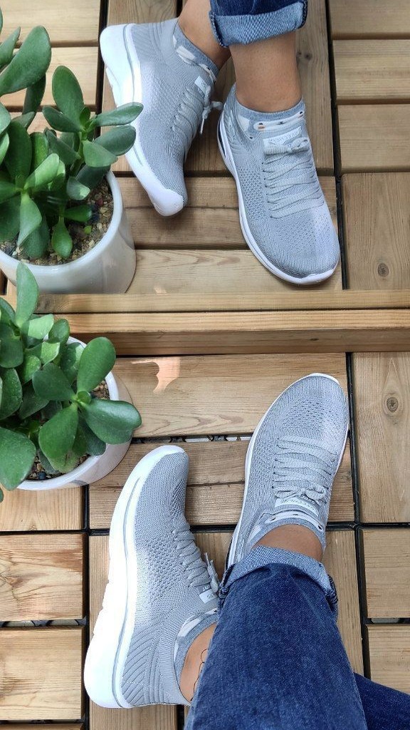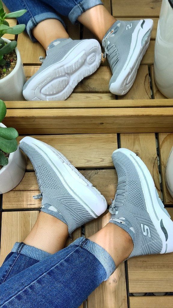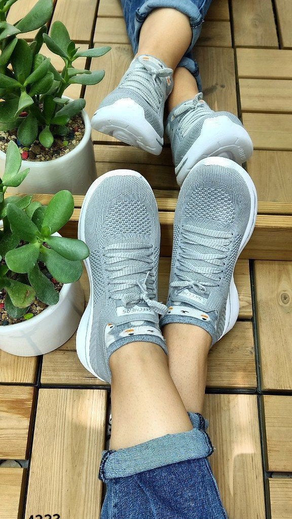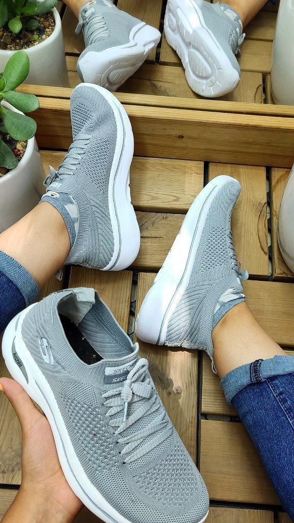 فروش فوق العاده این هفته کفش اسپرت و پیاده روی زنانه دخترانه مدل اسکیچرز طوسی زیره سفید کد4323 با ارسال رایگان