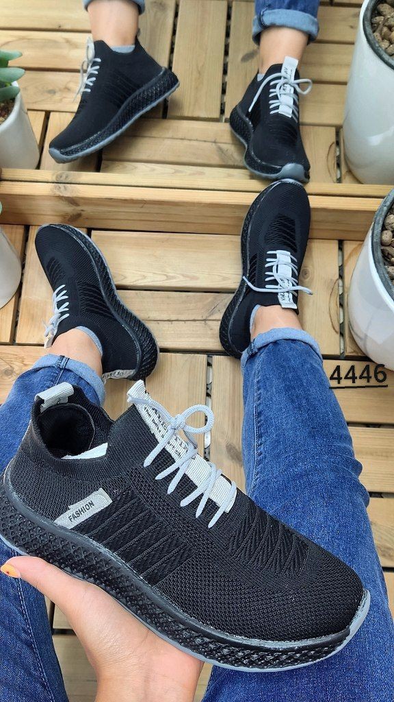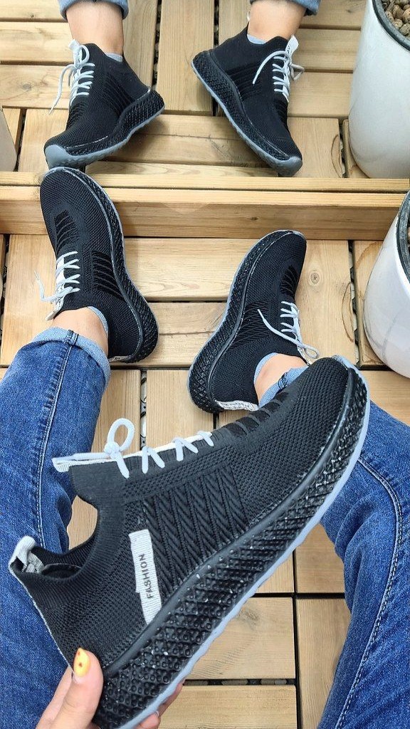 حراج بزرگ کفش اسپرت و پیاده روی زنانه جورابی مدل FASHION مشکی طوسی کد4446 با ارسال رایگان