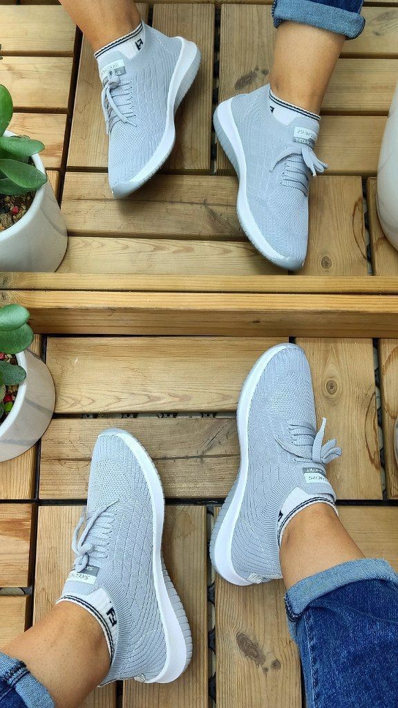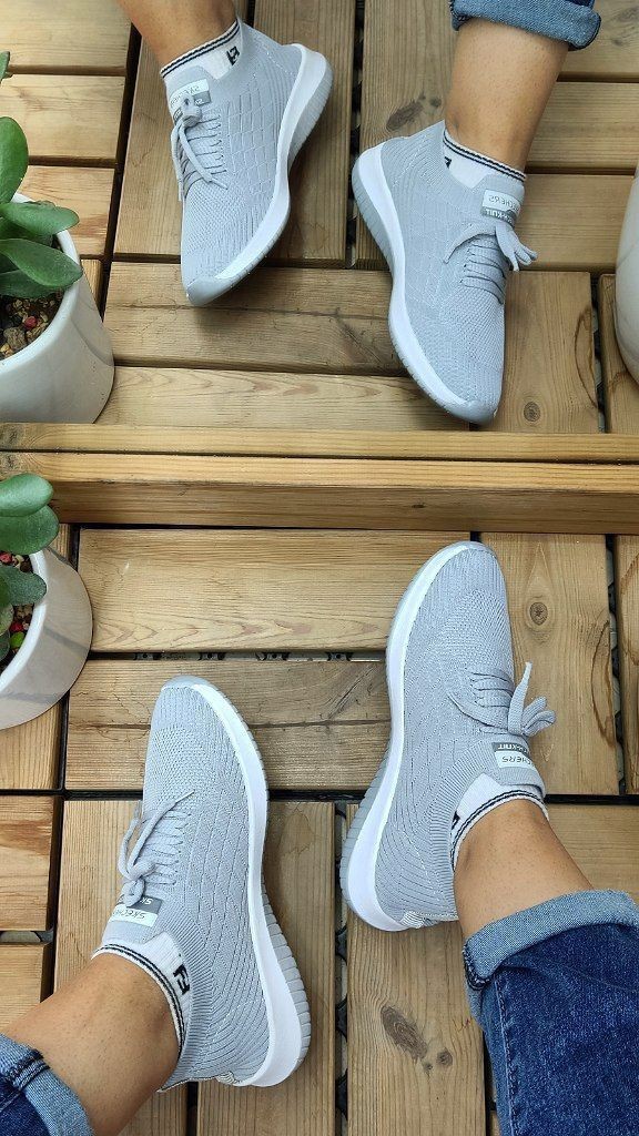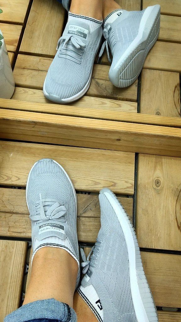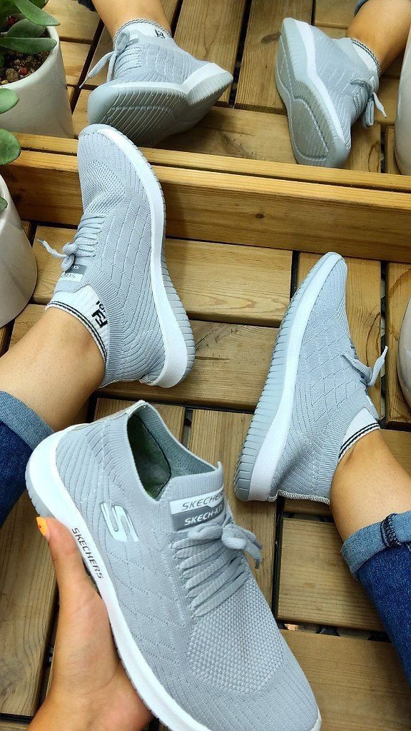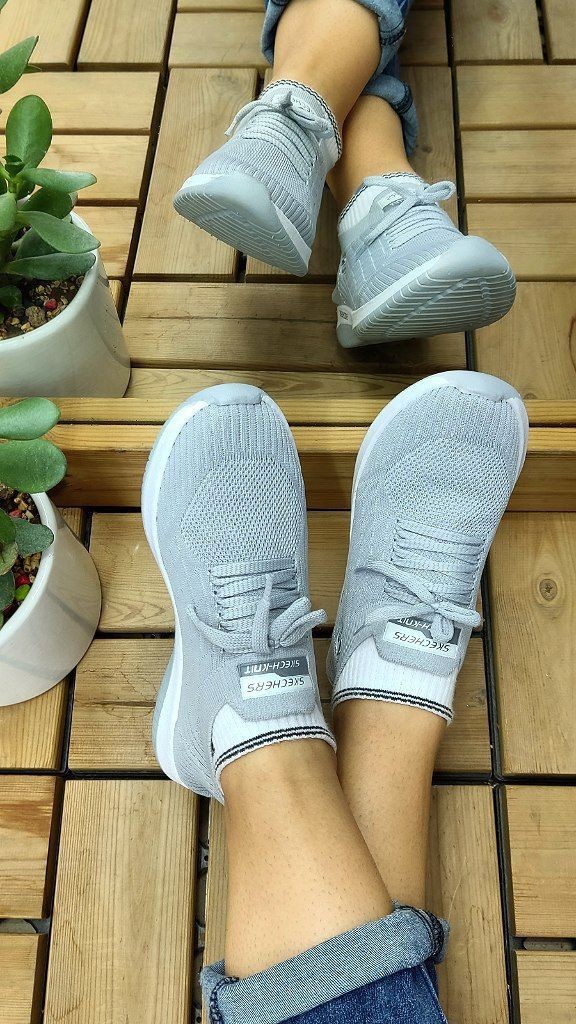 حراج بزرگ کفش اسپرت و پیاده روی زنانه مدل اسکیچرز طوسی روشن کد 799