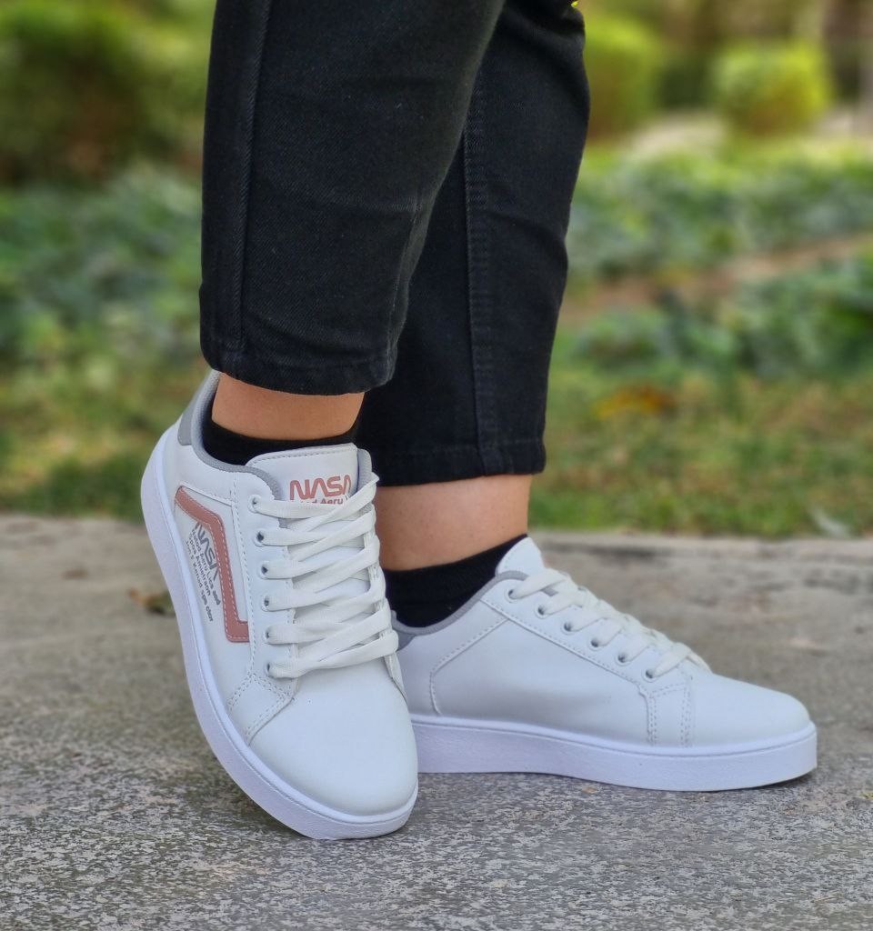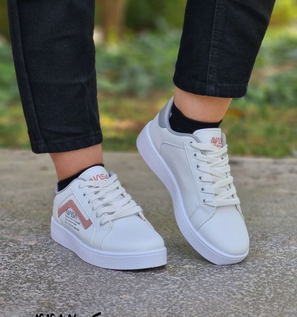 حراج فوق العاده کفش اسپرت دخترانه زنانه ونس مدل ناسا راحت و سبک رنگ سفید گلبهی با ارسال رایگان 4482