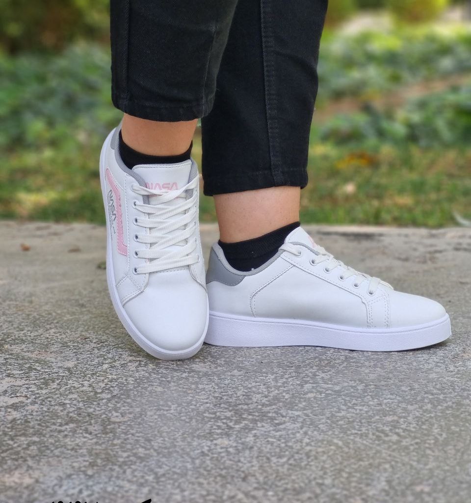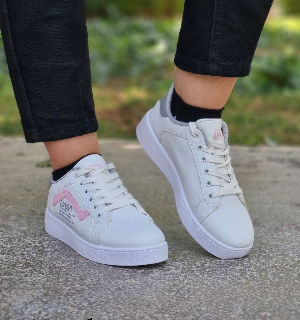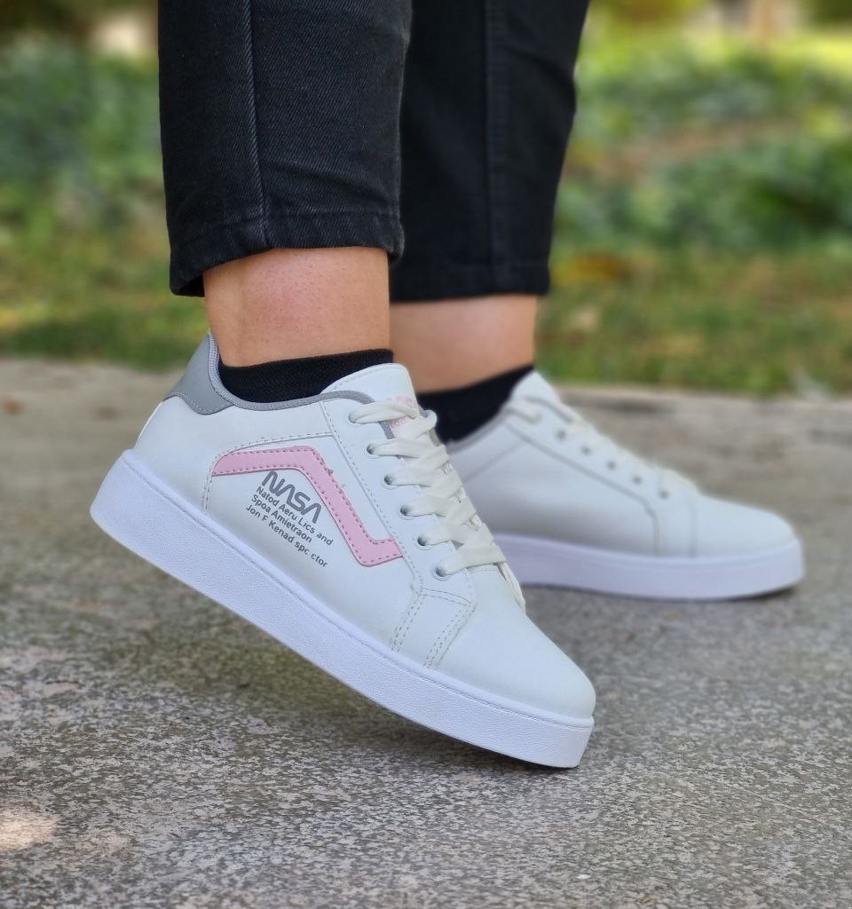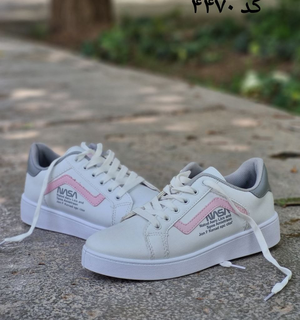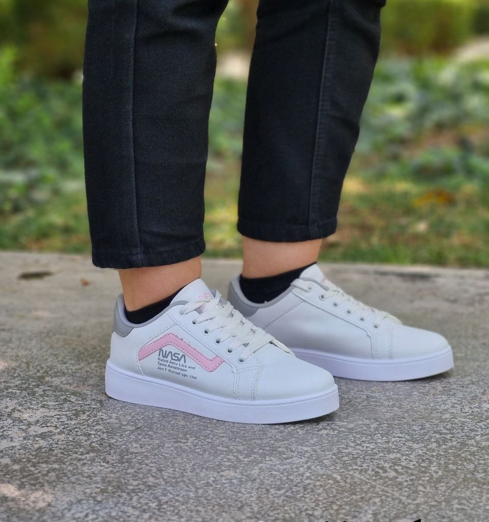 حراج استثنایی کفش اسپرت دخترانه زنانه ونس مدل ناسا نرم و راحت رنگ سفید صورتی با ارسال رایگان 4470