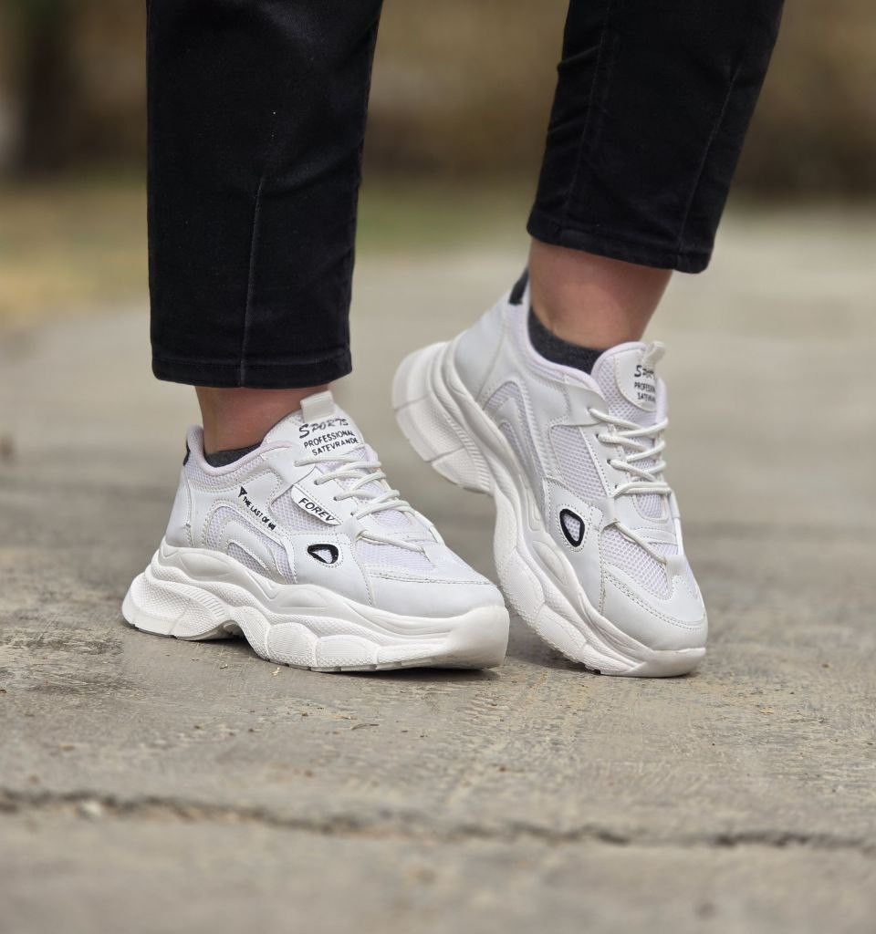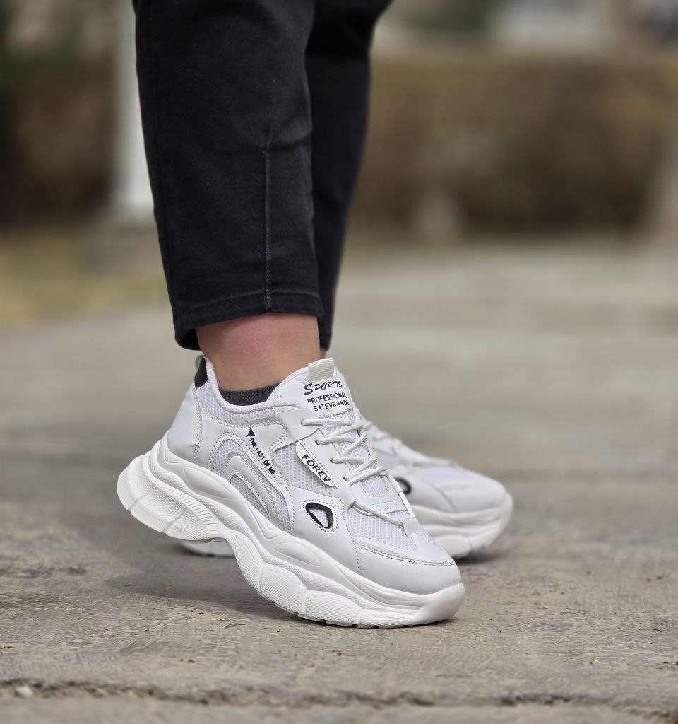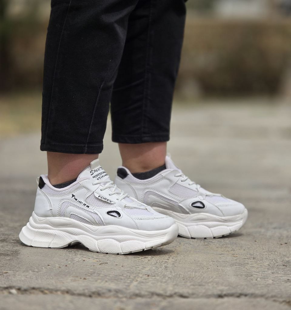 حراج شگفت انگیز کفش کتونی اسپرت دخترانه مدل FOREV رنگ سفید زیره پیو مقاوم و درجه یک با ارسال رایگان