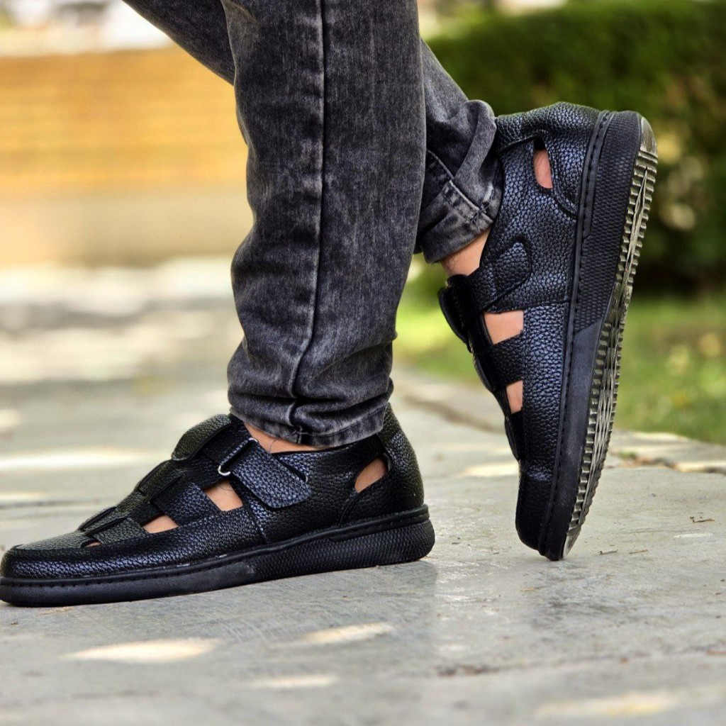 فروش ویژه کفش تابستانه طبی استاندارد مردانه راحت وجذاب رنگ مشکی با ارسال رایگان