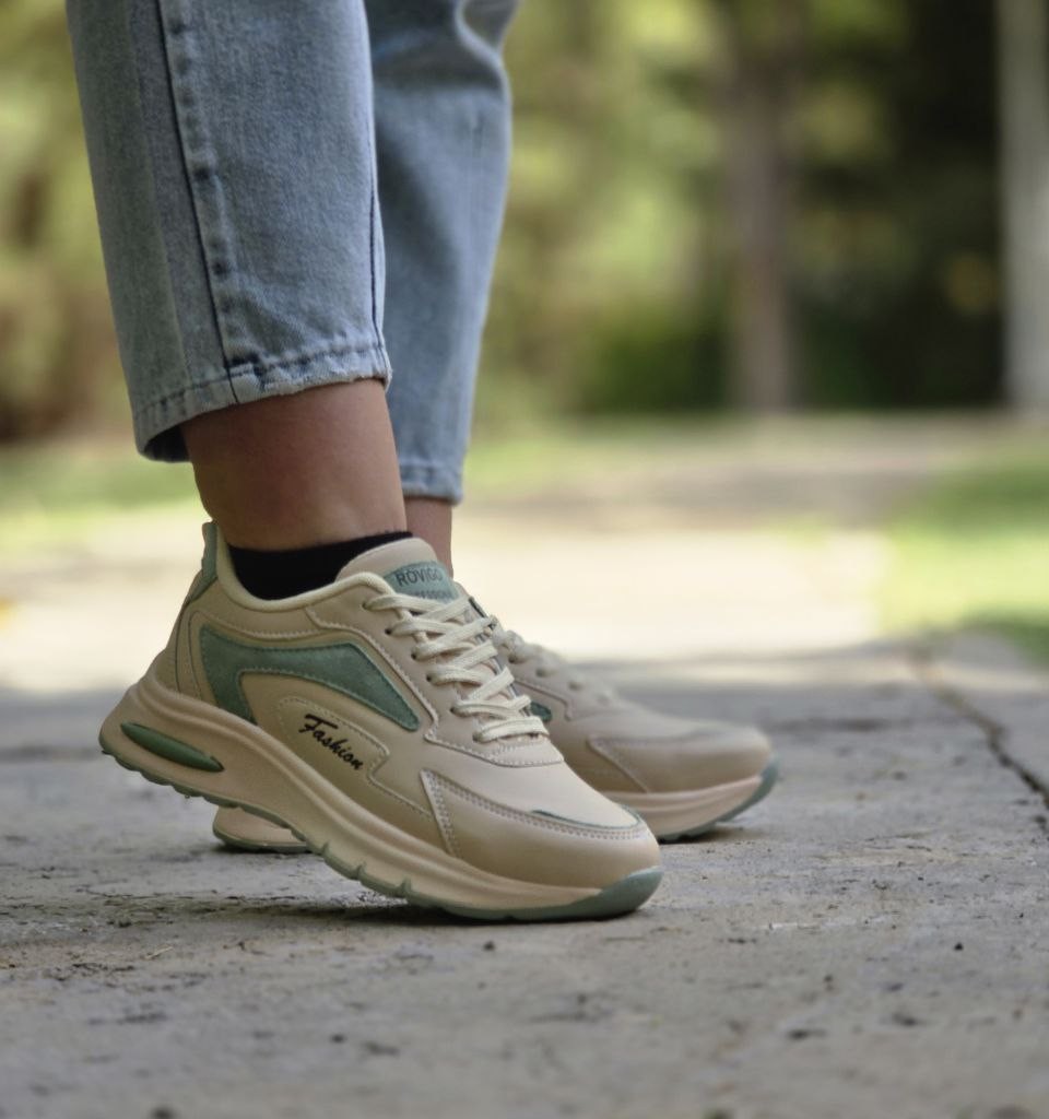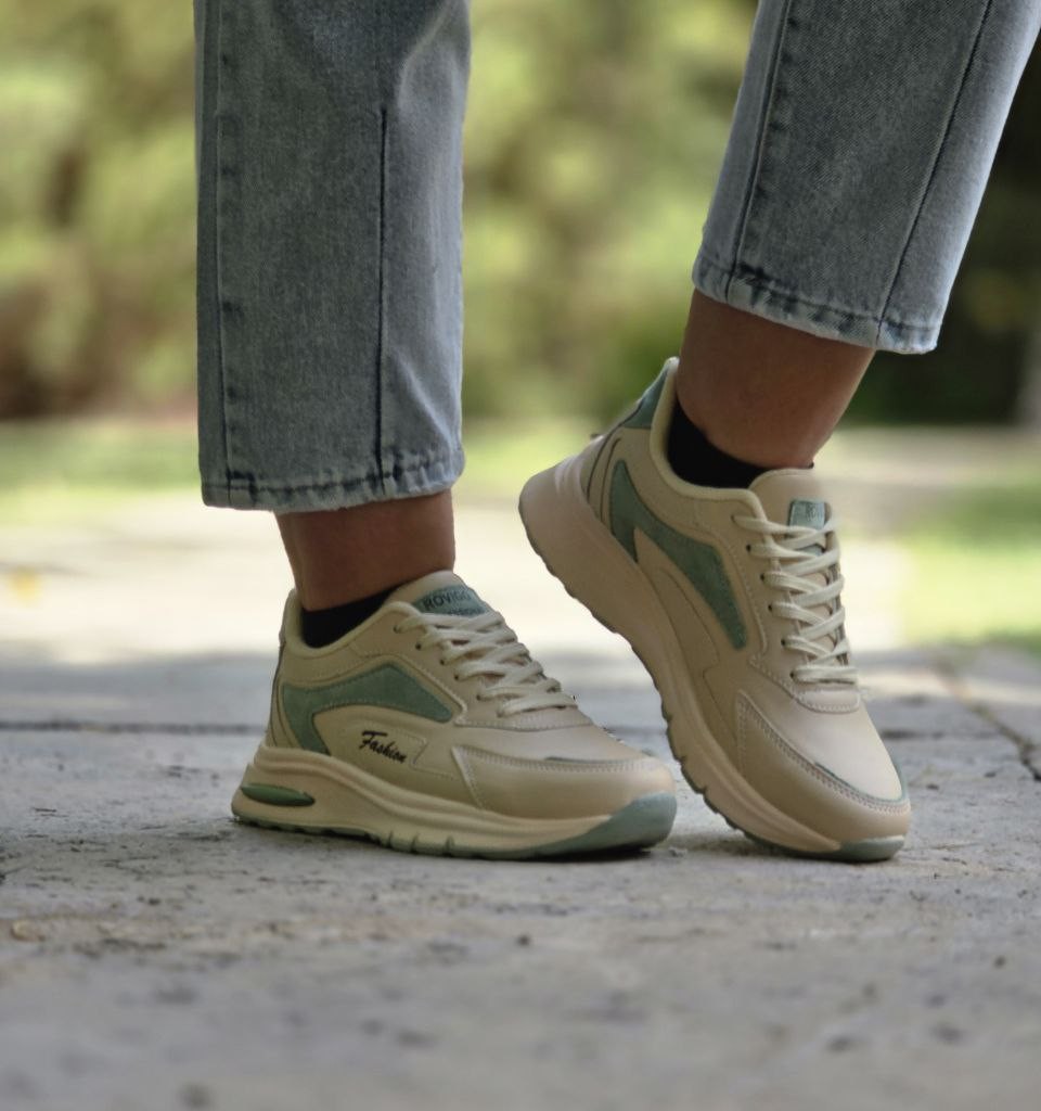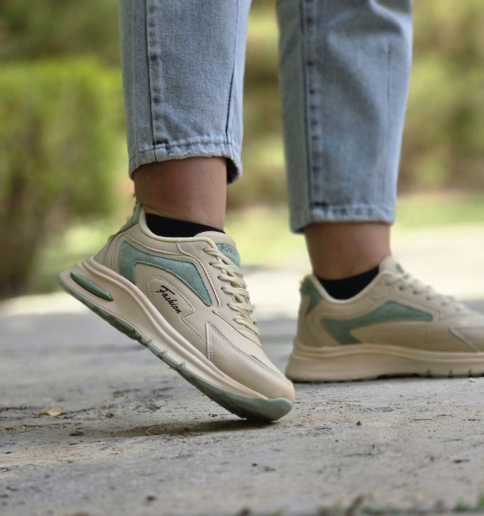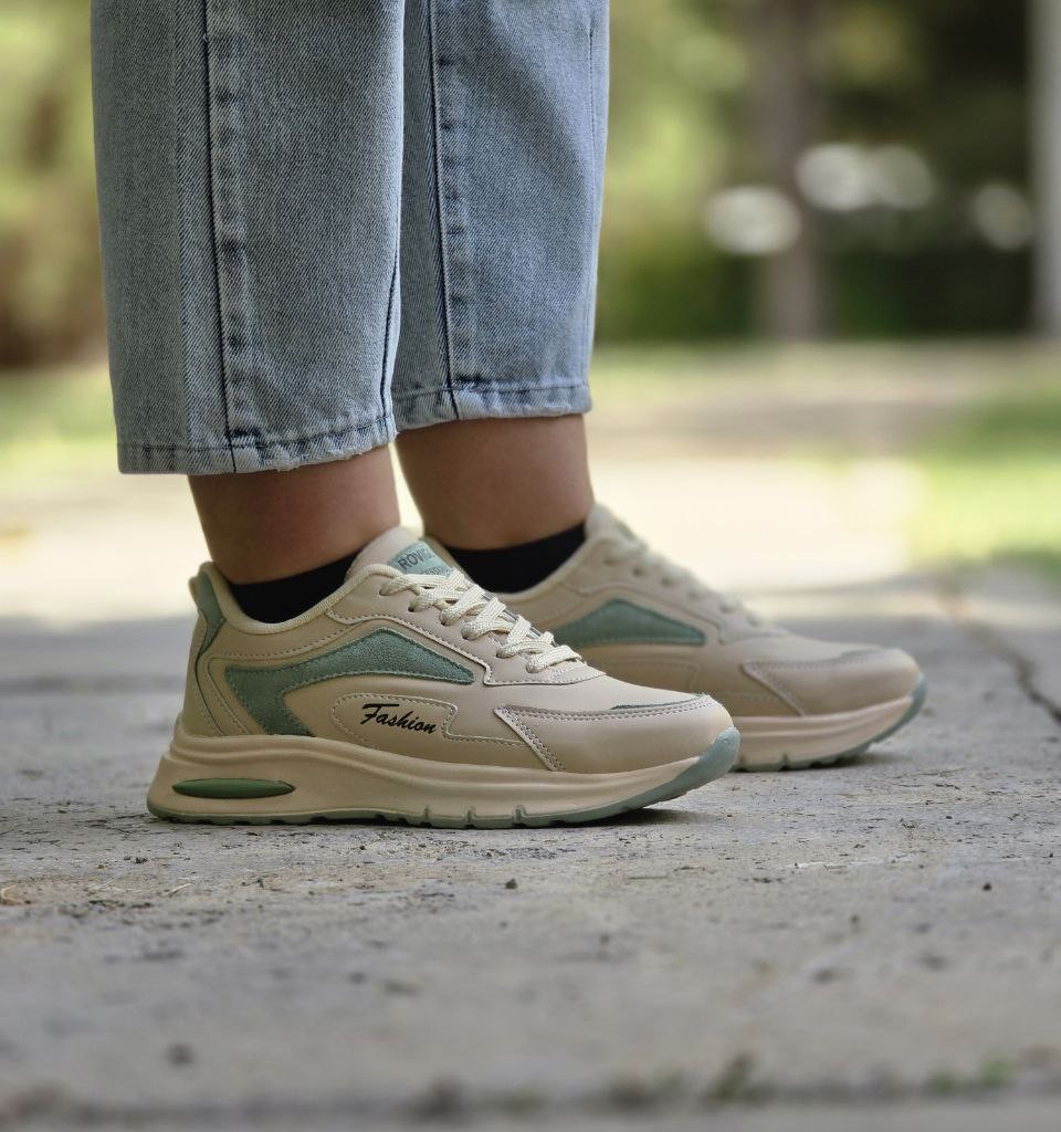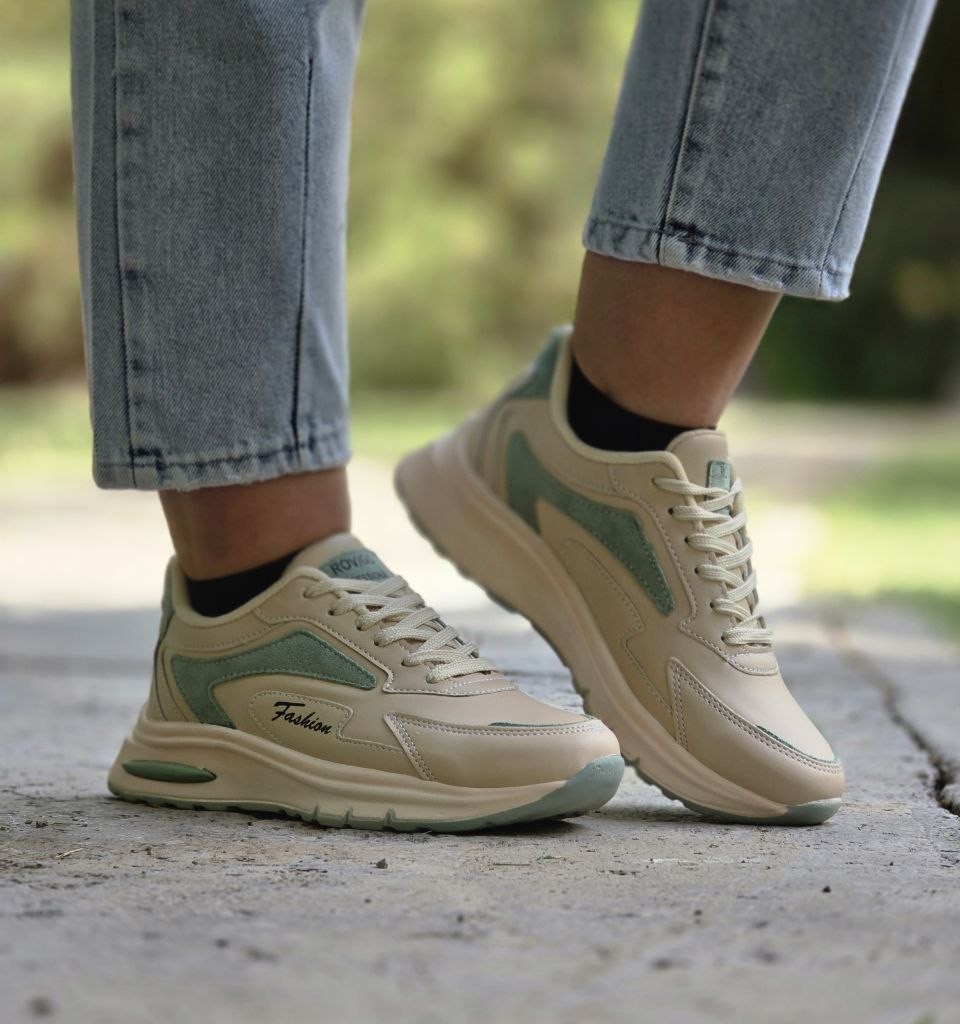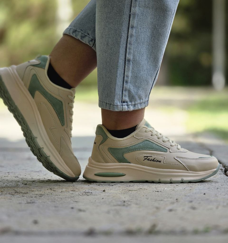 فروش ویژه کفش کتونی اسپرت دخترانه و زنانه مدل فشیون با طرح عالی رنگ کرم سبز باکیفیت