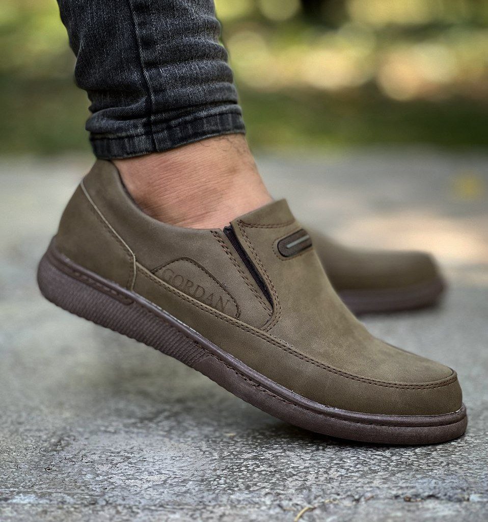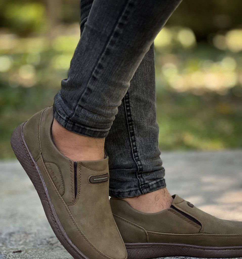 حراج فوق العاده کفش مجلسی و طبی مردانه پسرانه شیک و خاص رنگ زیتونی با ارسال رایگان 3410