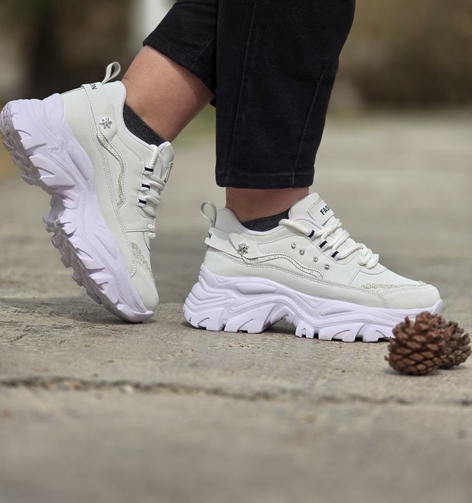فروش شگفت انگیز کفش کتونی اسپرت دخترانه و زنانه مدل فشیون نگینی زیبا . نرم و راحت رنگ سفید با ارسال رایگان