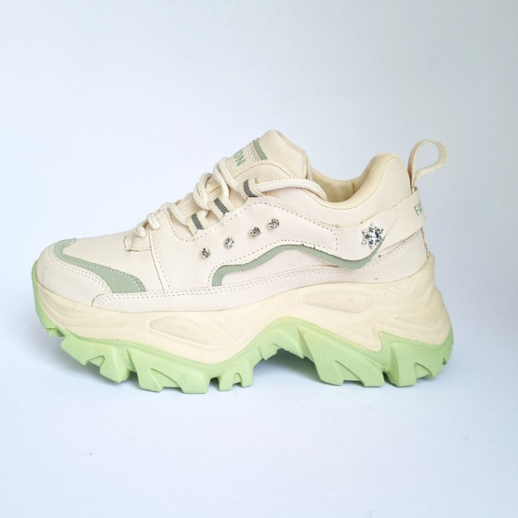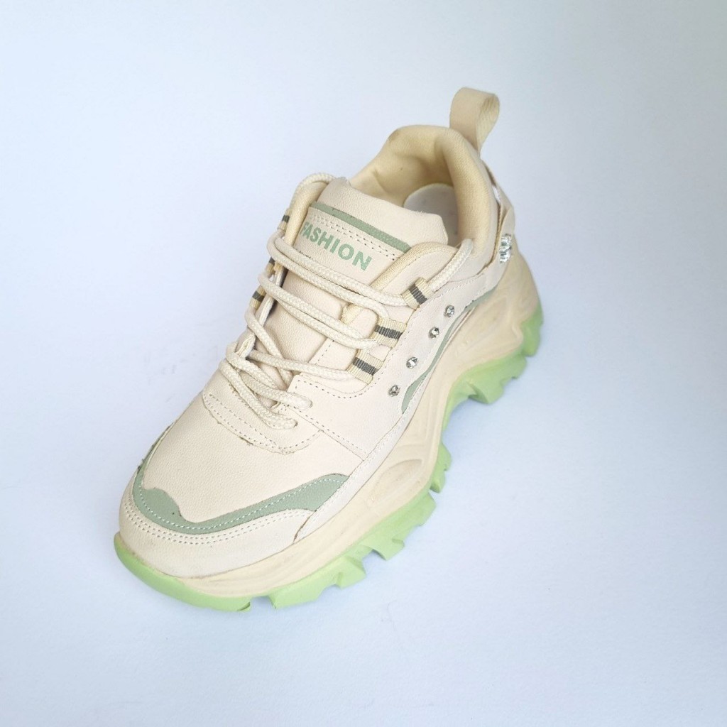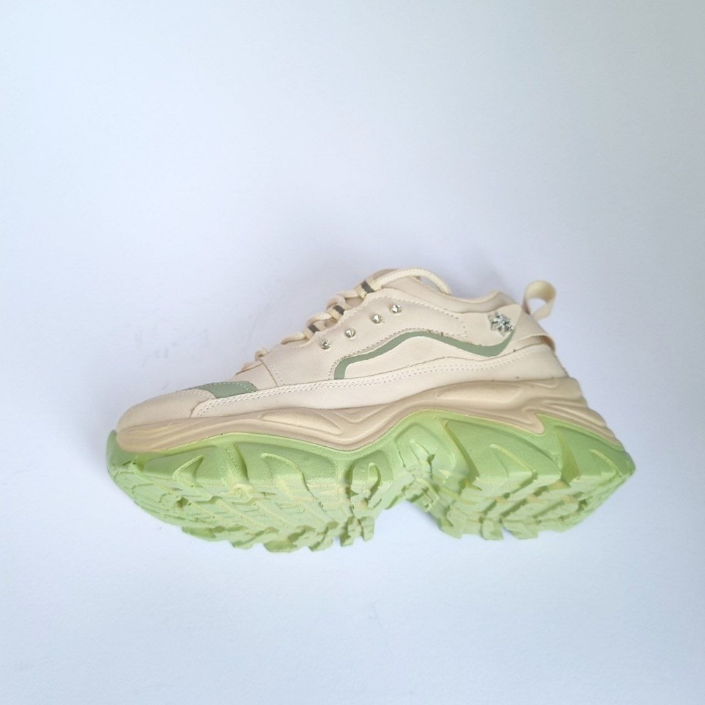 حراج استثنایی کفش کتونی اسپرت دخترانه و زنانه مدل فشیون مقاوم و خاص رنگ کرم سبز باکیفیت
