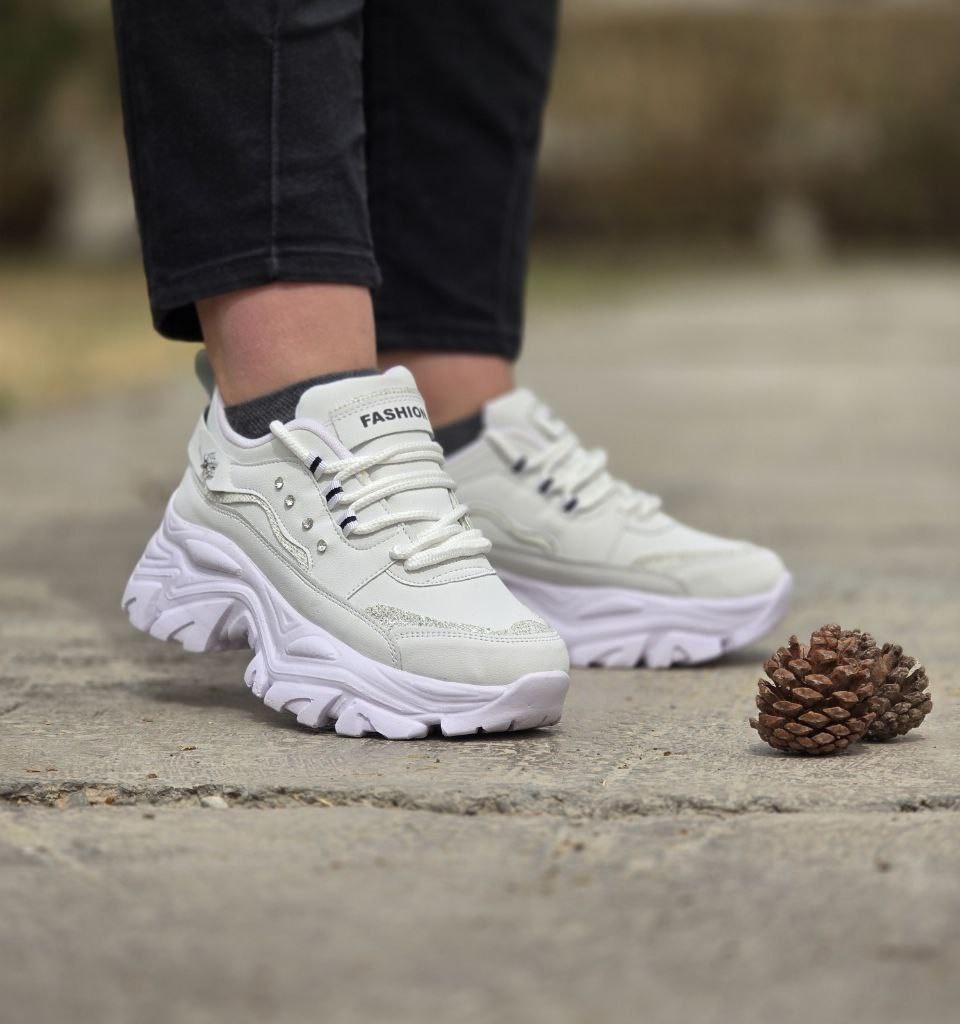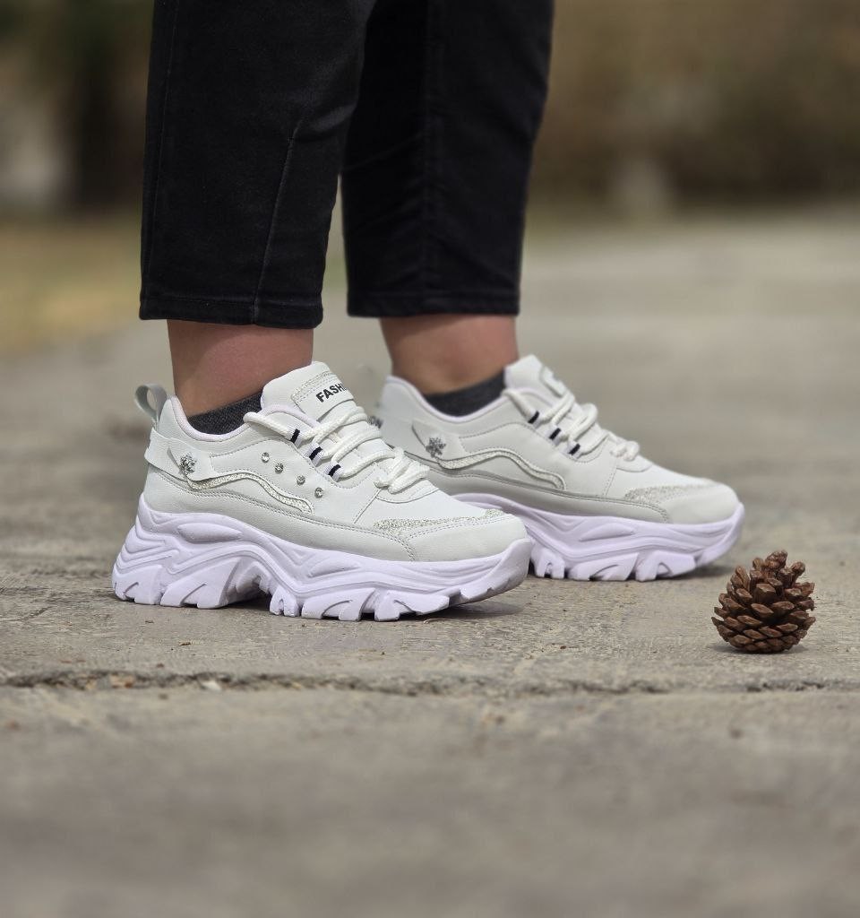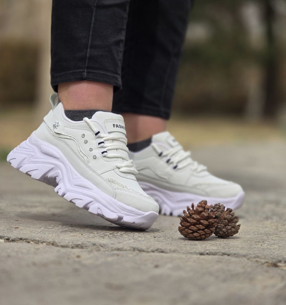 فروش استثنایی کفش کتونی اسپرت دخترانه و زنانه مدل فشیون نگینی شیک و دلبر رنگ سفید با ارسال رایگان