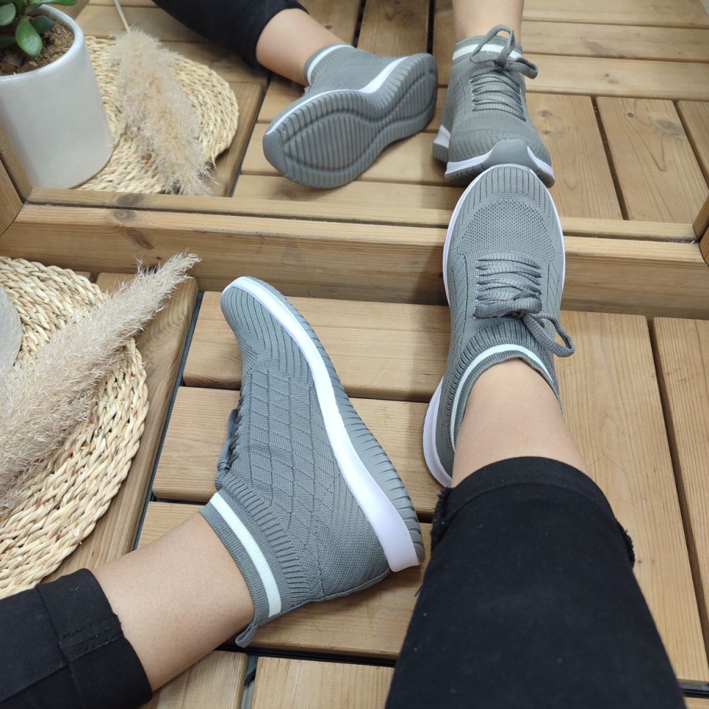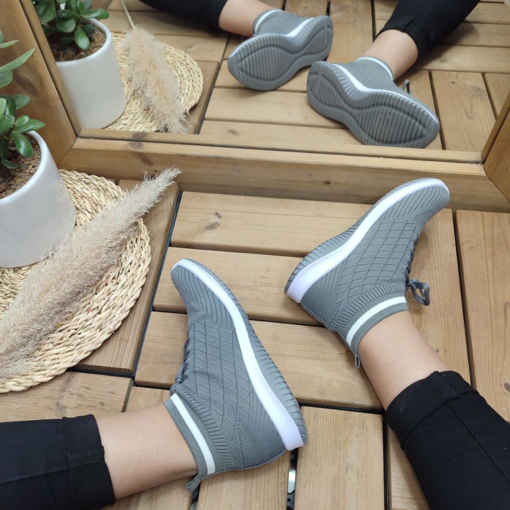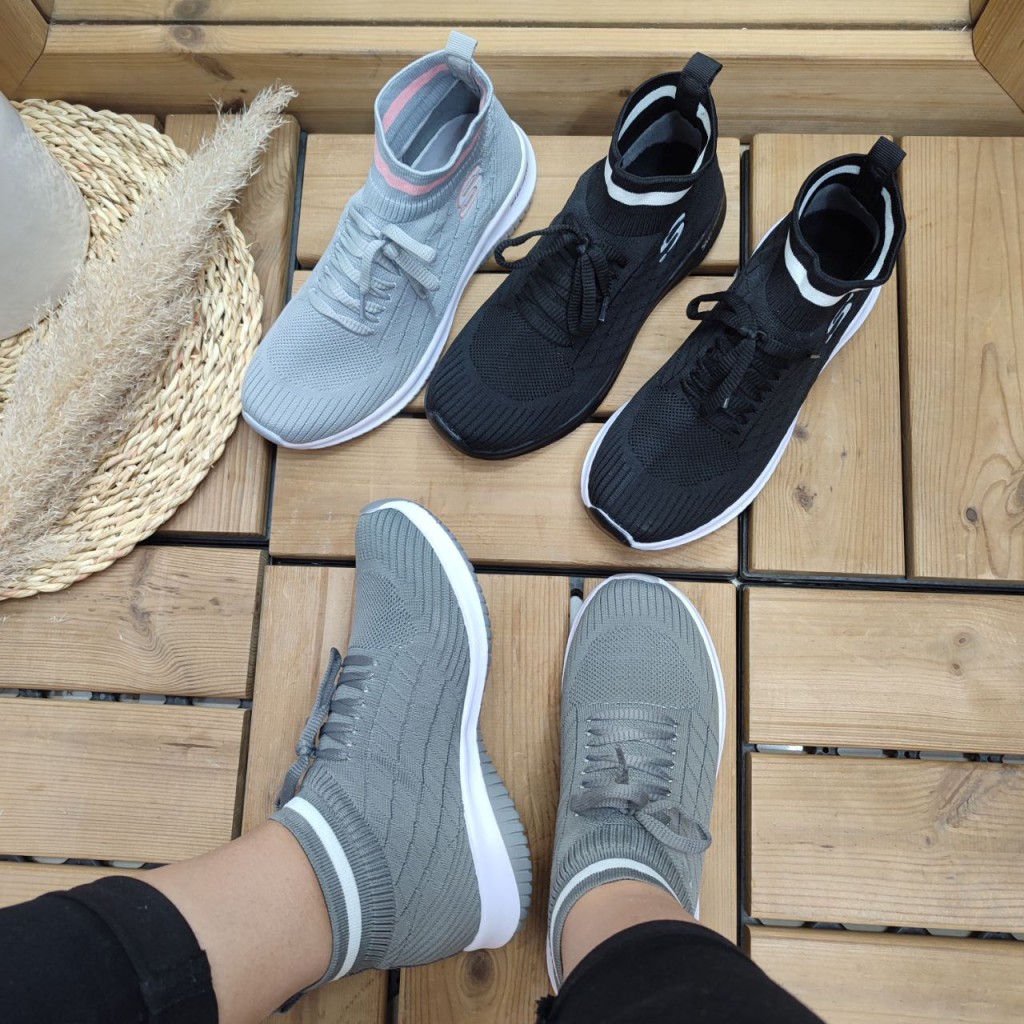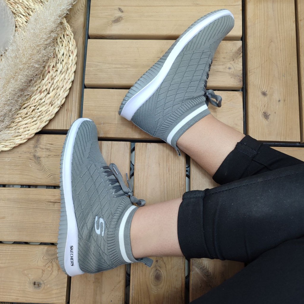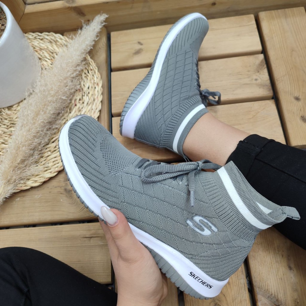 فروش فوق العاده کفش اسپرت و پیاده روی ساقدار زنانه دخترانه مدل اسکیچرز طوسی سفید با ارسال رایگان