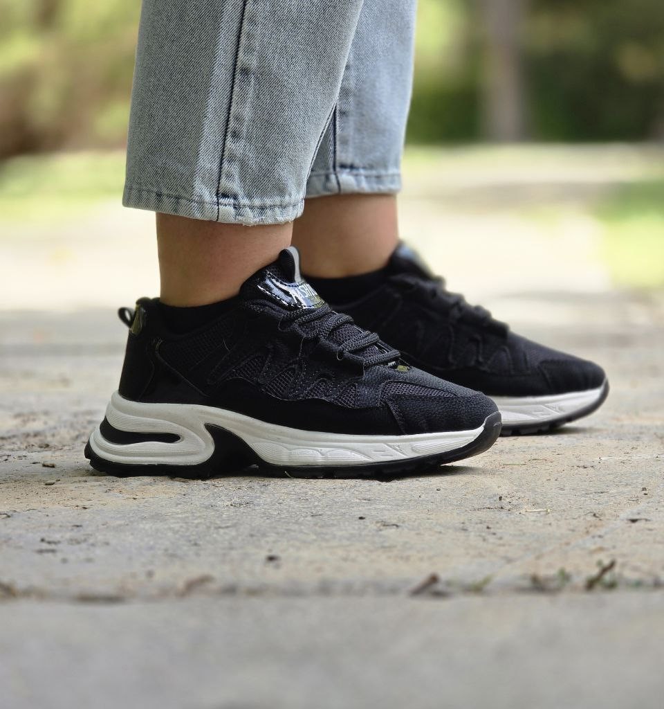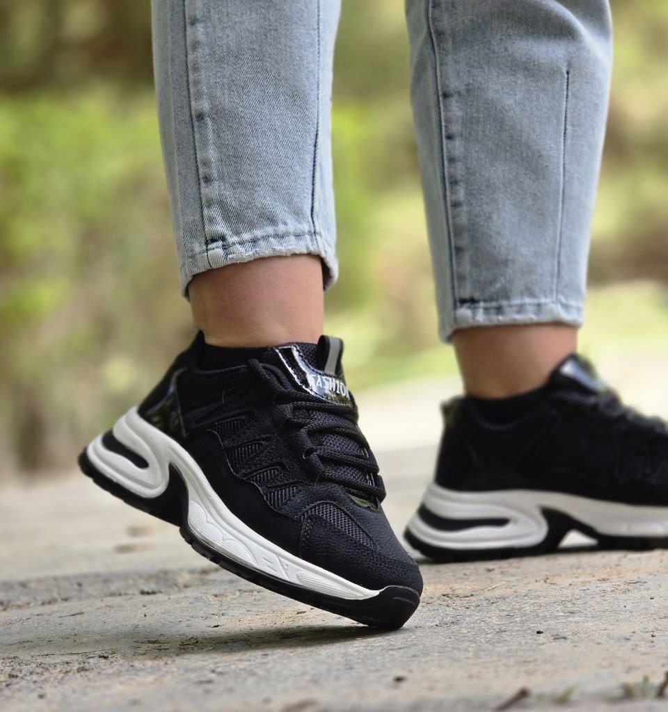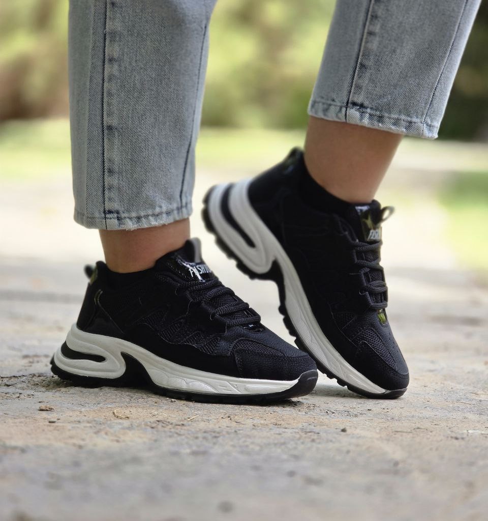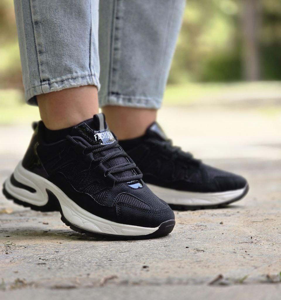 حراج پرفروش کفش کتونی اسپرت دخترانه و زنانه مدل فشیون با کیفیت رنگ مشکی زیره سفید به روز