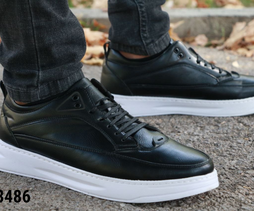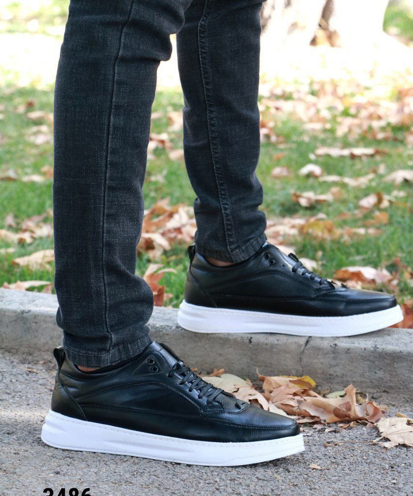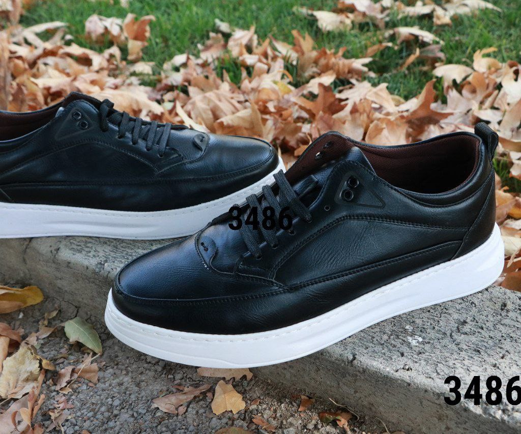 کفش مدل بولتون باکیفیت رویه چرمی با کیفیت مردانه پسرانه به رنگ مشکی زیره سفید با ارسال رایگان کد 3486
