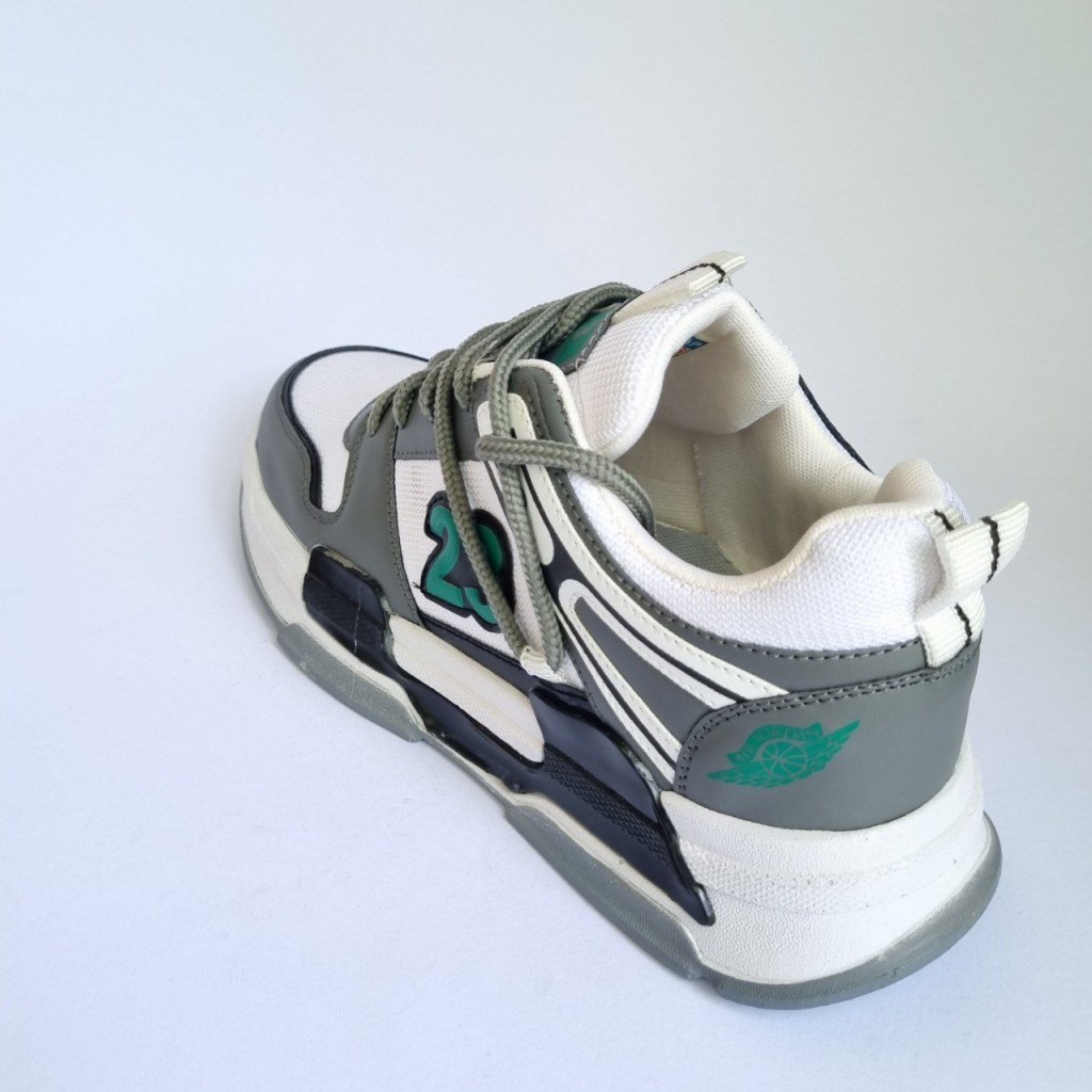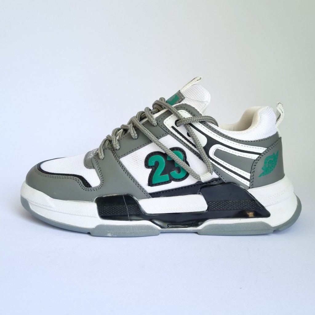 حراج جدید کفش اسپرت مردانه و پسرانه مدل جردن 23 بادوام بالا و عالی رنگ طوسی سفیدسبز به روز