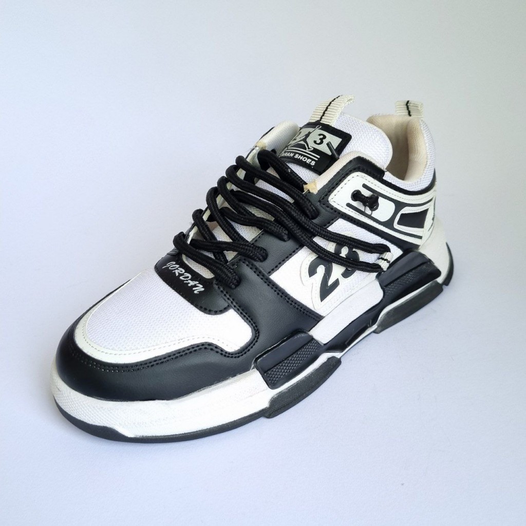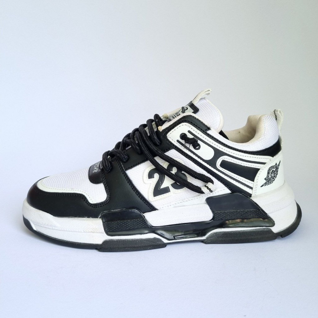 فروش فوق العاده خاص کفش اسپرت مردانه و پسرانه مدل جردن 23 ویژه آقایان خوش سلیقه رنگ مشکی سفید خوشپا