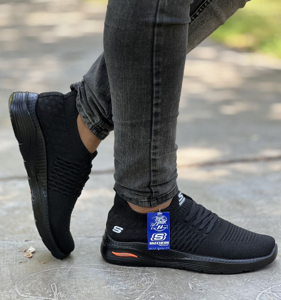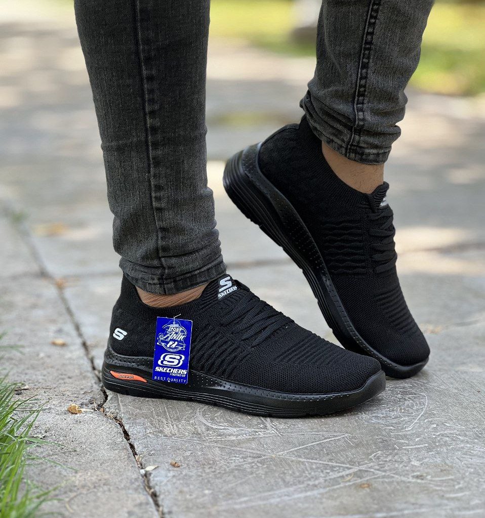حراج فوق العاده کفش راحتی مردانه پسرانه مدل اسکیچرز مناسب پیاده روی رنگ مشکی فوق العاده باکیفیت و راحت با ارسال رایگان کد 3760