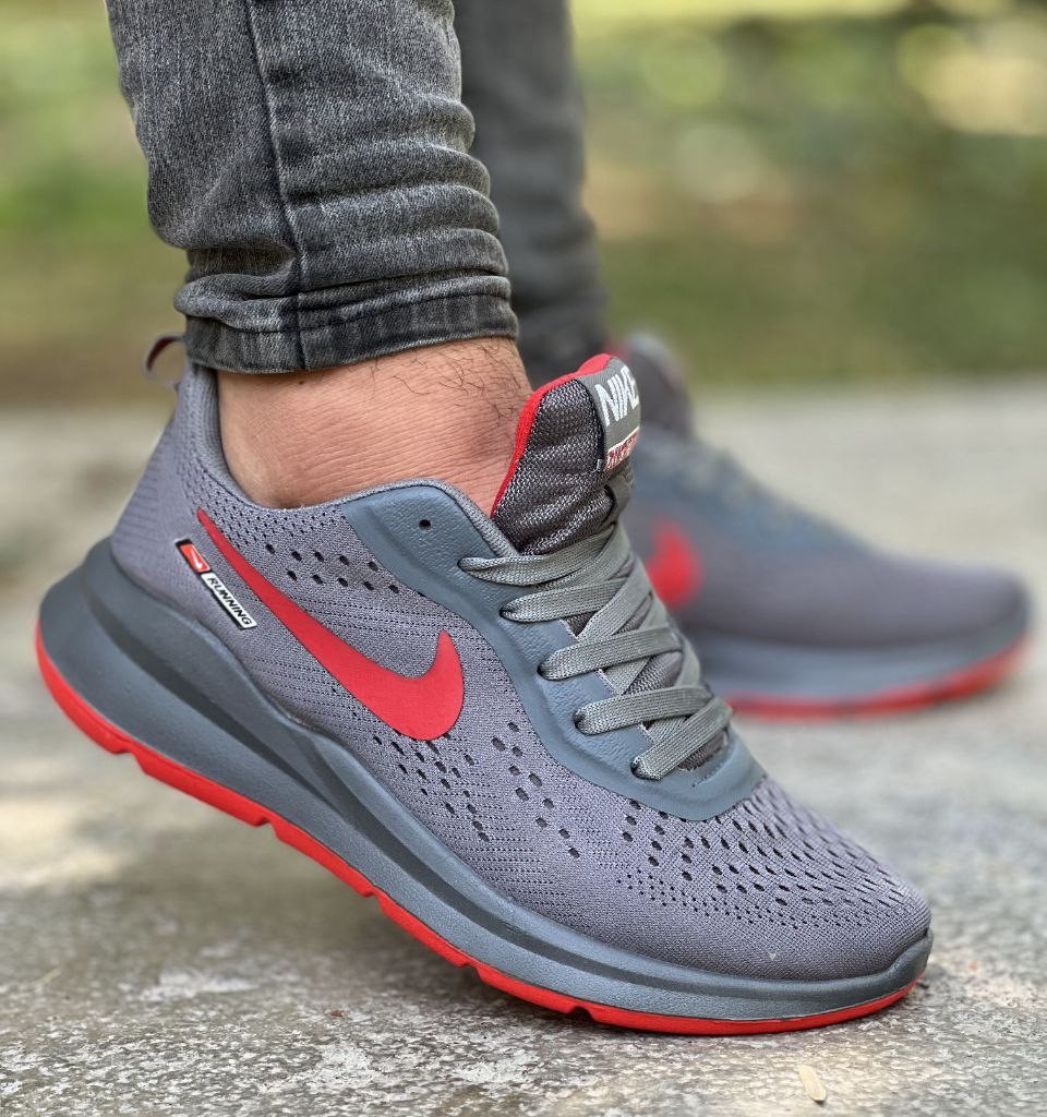 فروش فوق العاده کفش اسپرت مردانه پسرانه مدل نایک زیره پیو با ضمانت رنگ طوسی قرمز ارسال رایگان