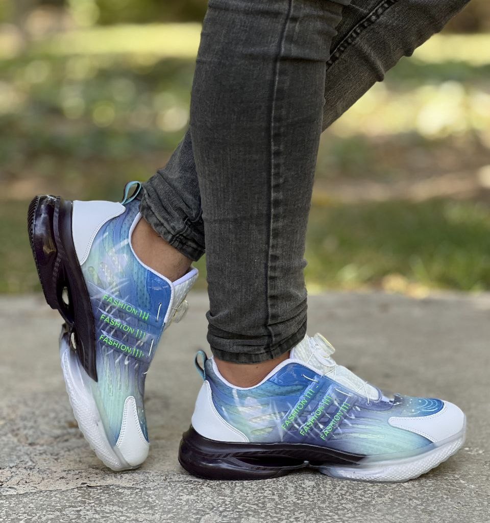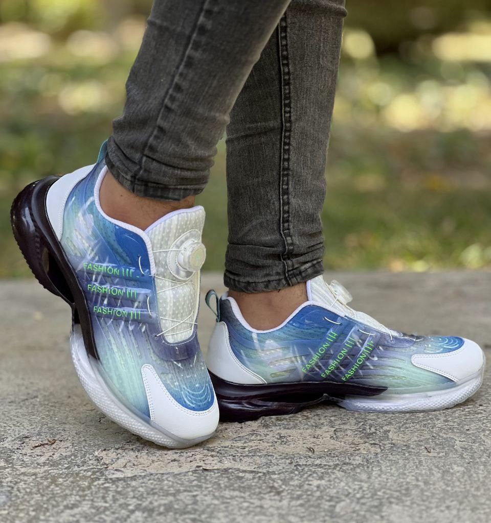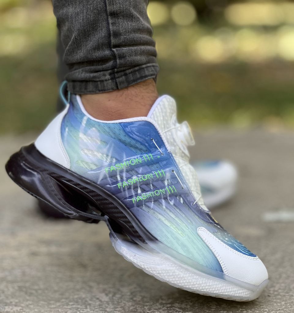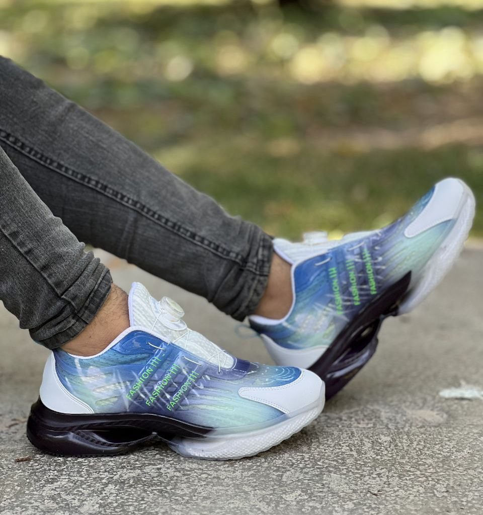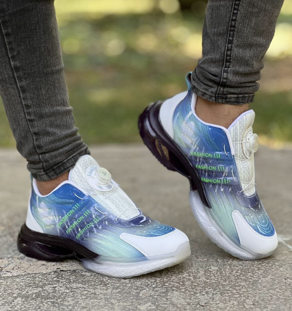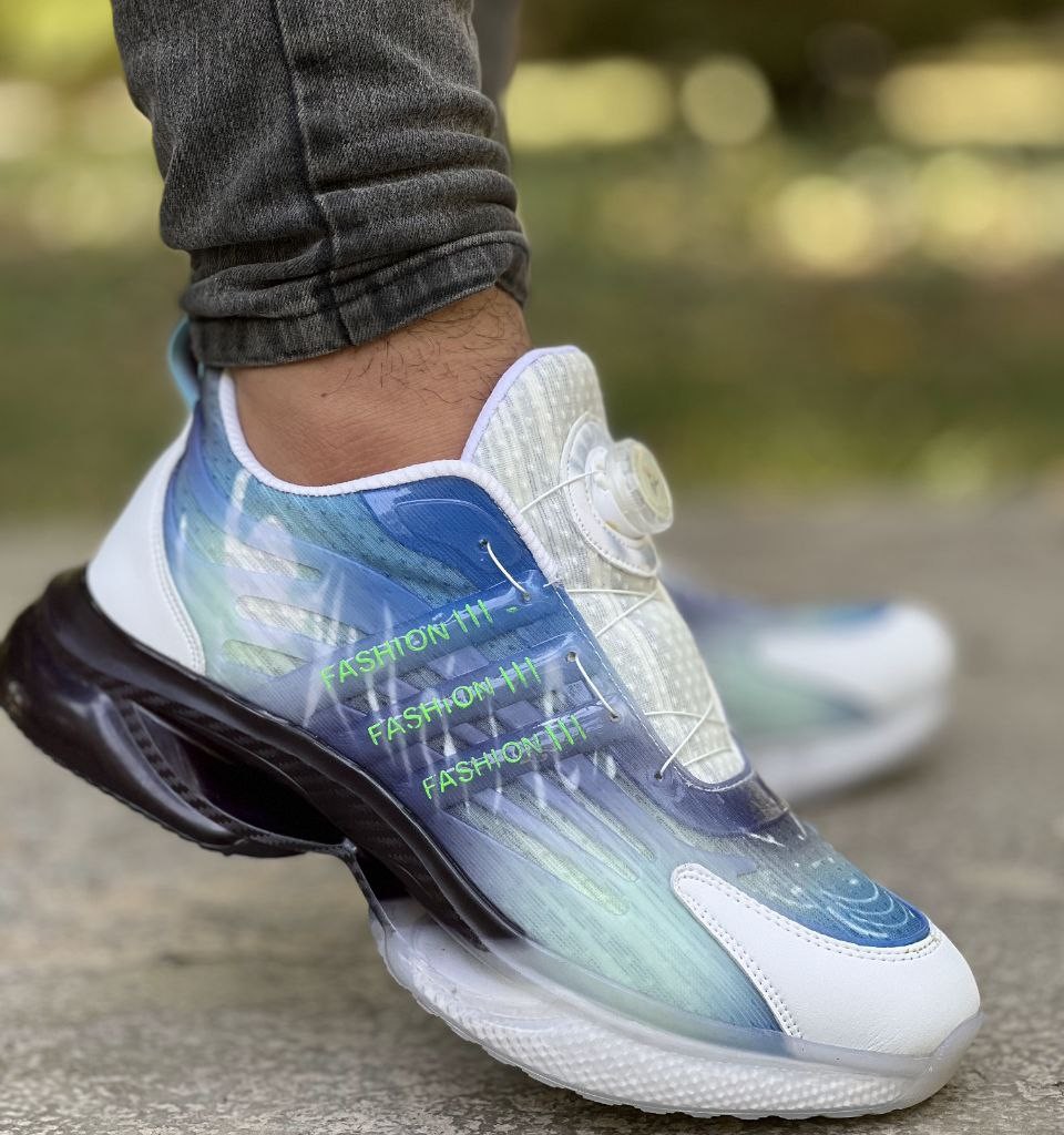 فروش جذاب کفش اسپرت مردانه مدل پمپی جدید و پرطرفدار رنگ سفید ابی مشکی با ارسال رایگان