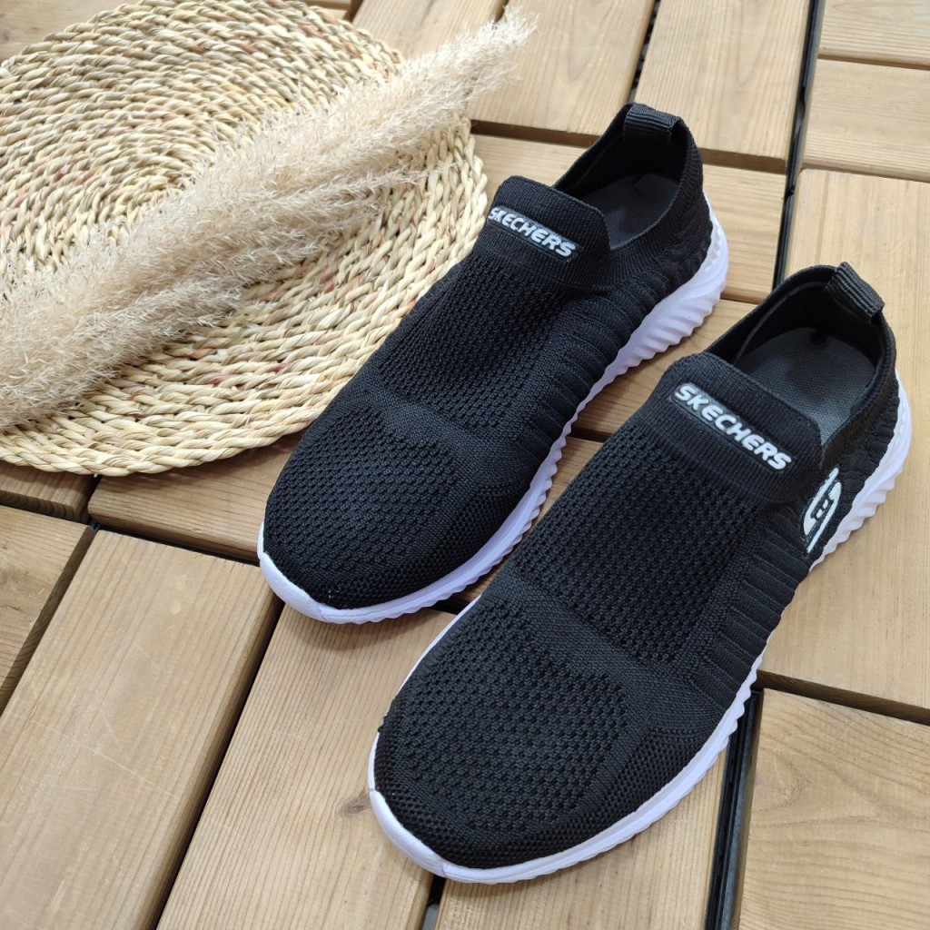 فروش کفش کتونی اسپرت مردانه پسرانه مدل اسکیچرز نرم و با کیفیت ویژه پیاده روی رنگ مشکی مشکی زیره سفید با ارسال رایگان 3198