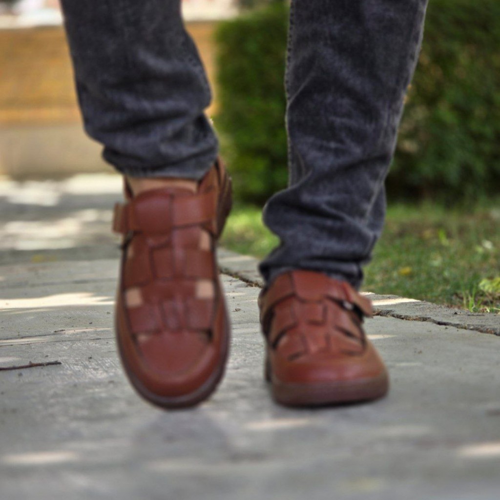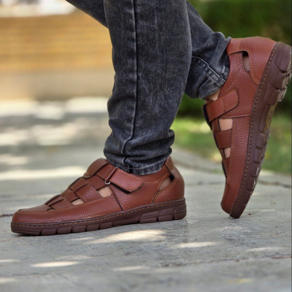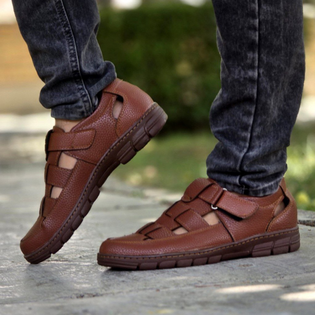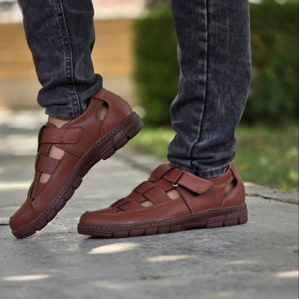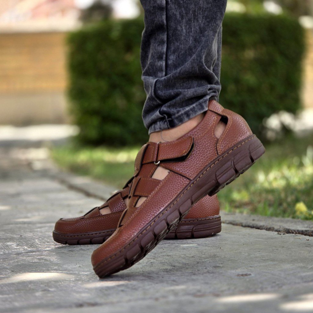 حراج فوق العاده کفش تابستانه طبی استاندارد مردانه با کیفیت و زیبا رنگ قهوه ای روشن با ارسال رایگان