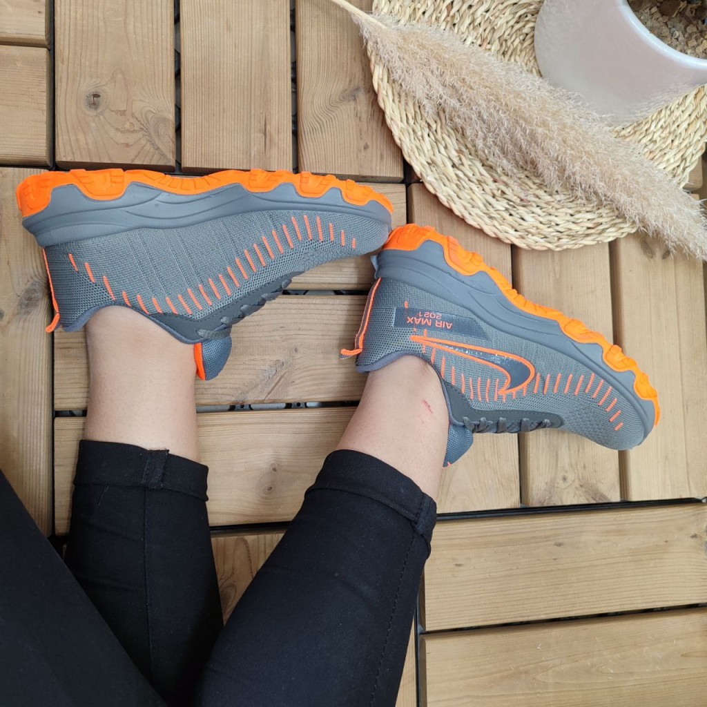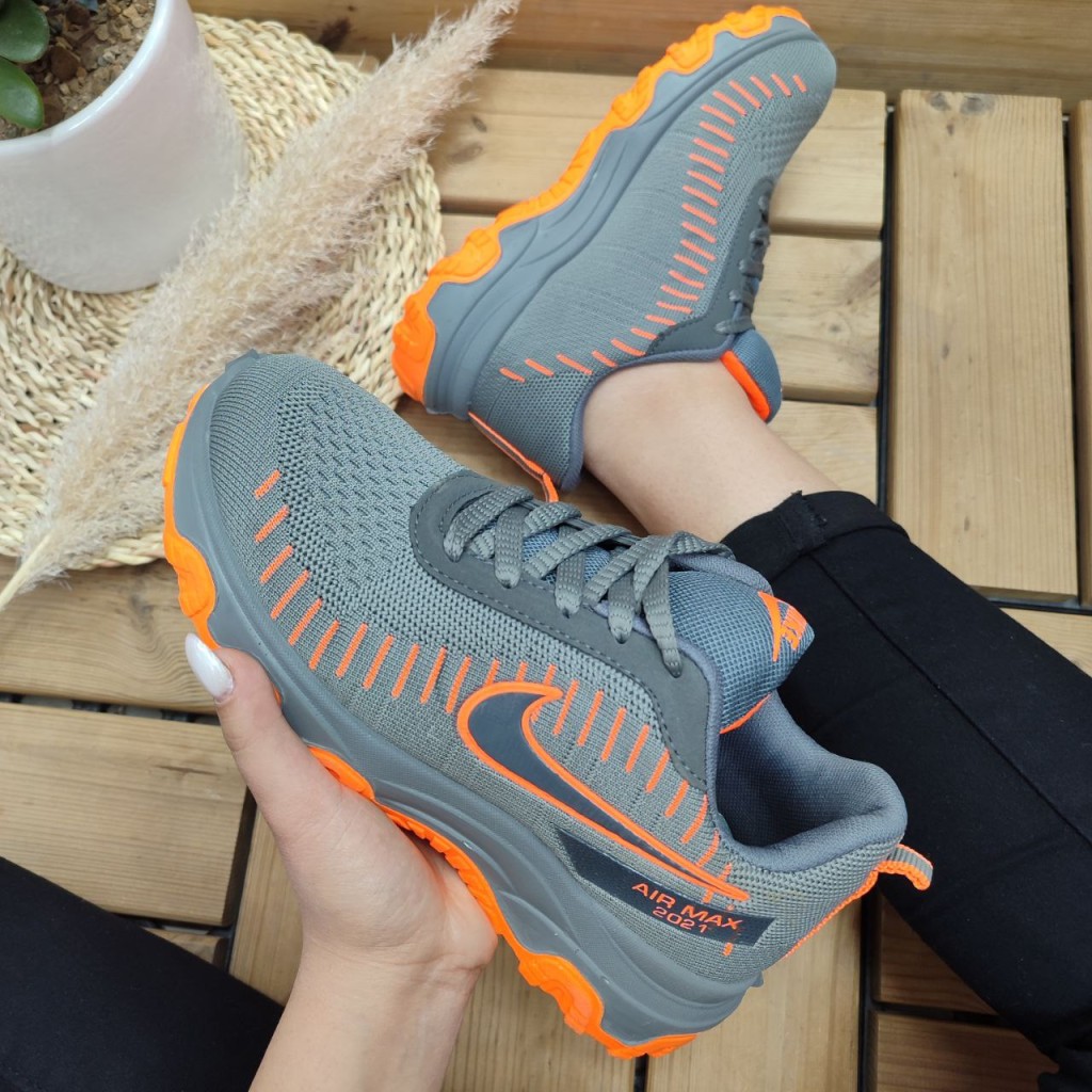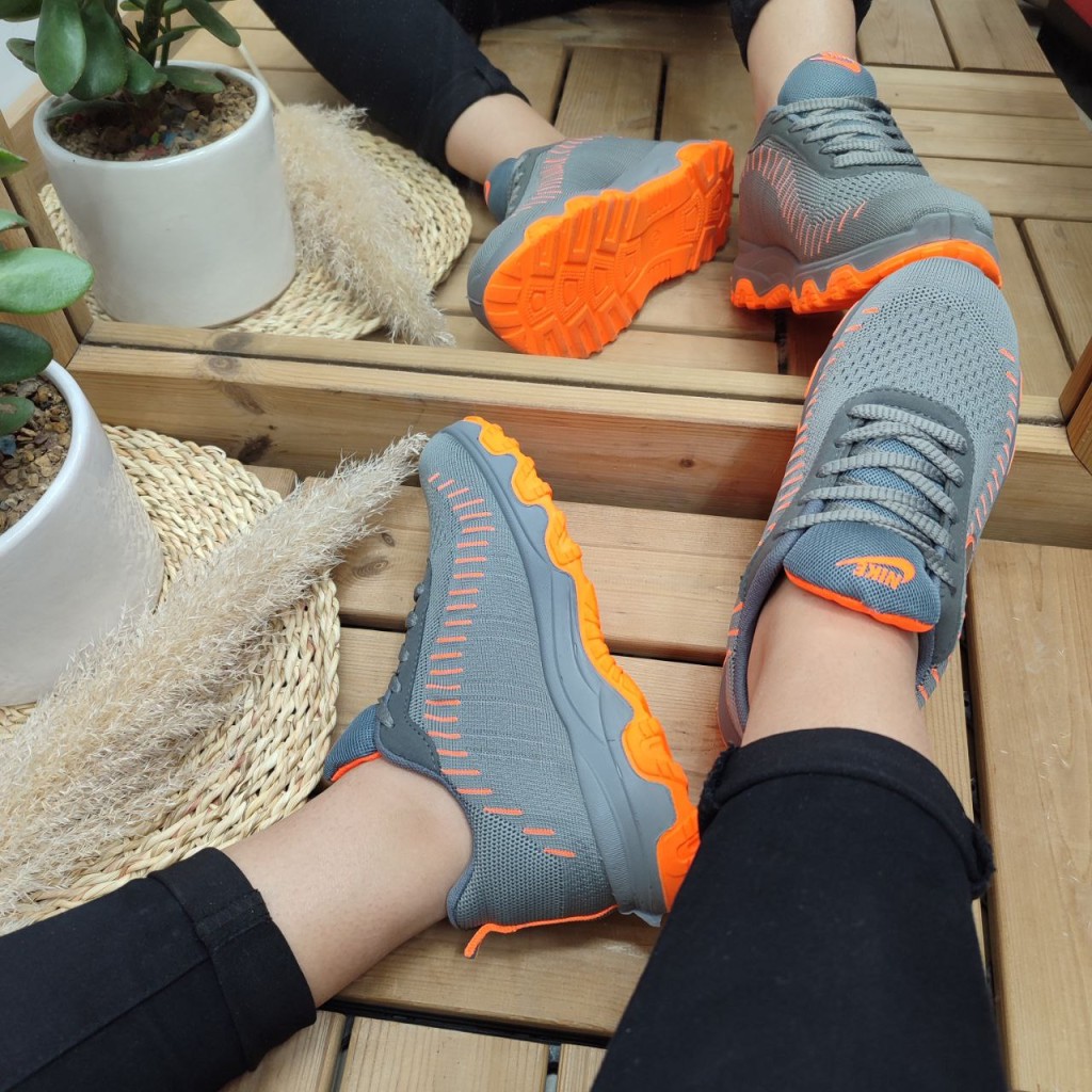 کفش اسپرت دخترانه مدل نایک با طراحی منحصر به فرد طوسی نارنجی با ارسال رایگان