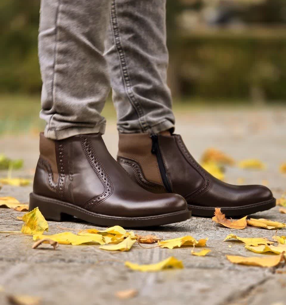 حراج ویژه نیم بوت مجلسی مردانه و پسرانه با کیفیت عالی و درجه یک رنگ قهوه ای زیره راحت و سبک