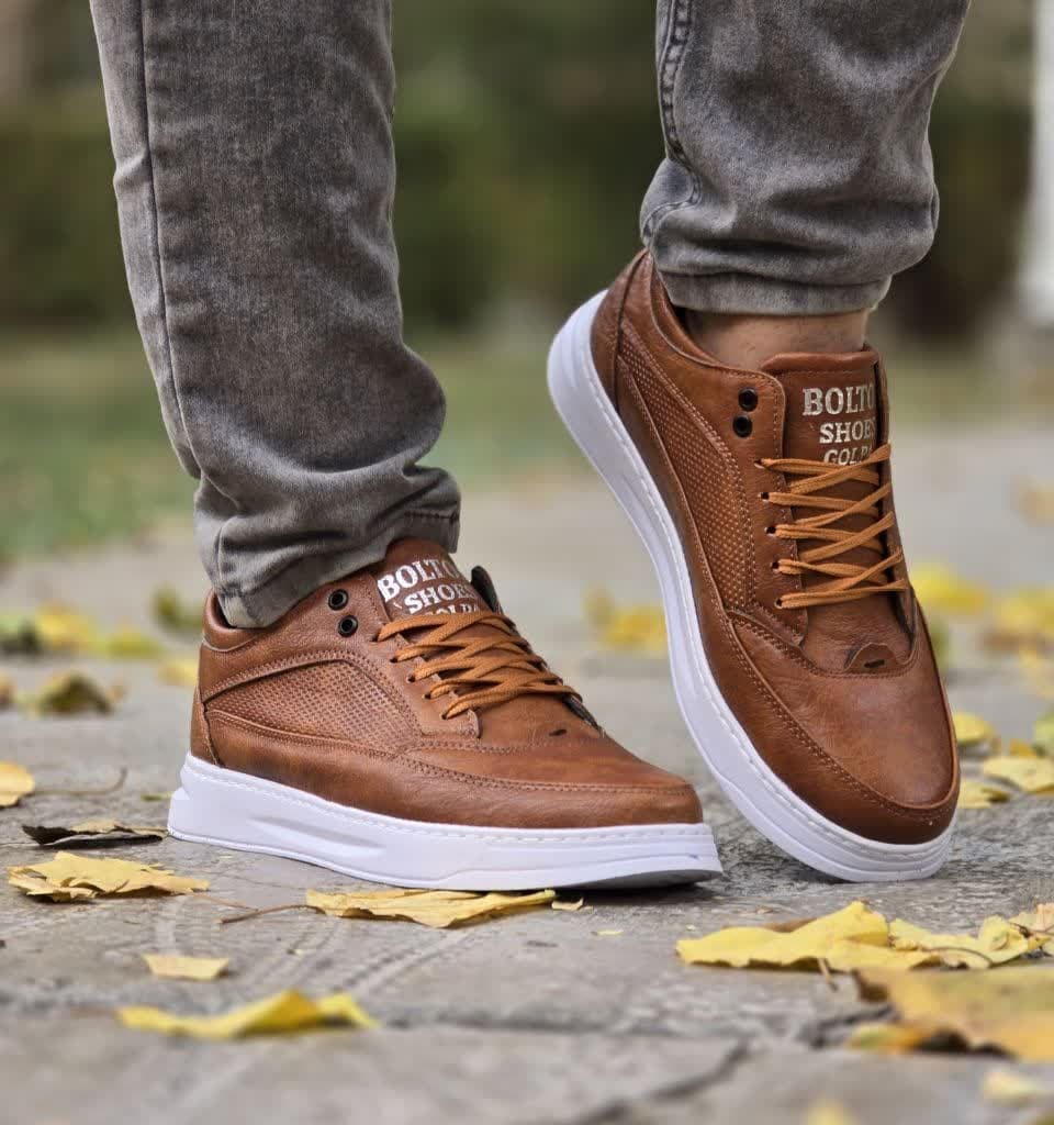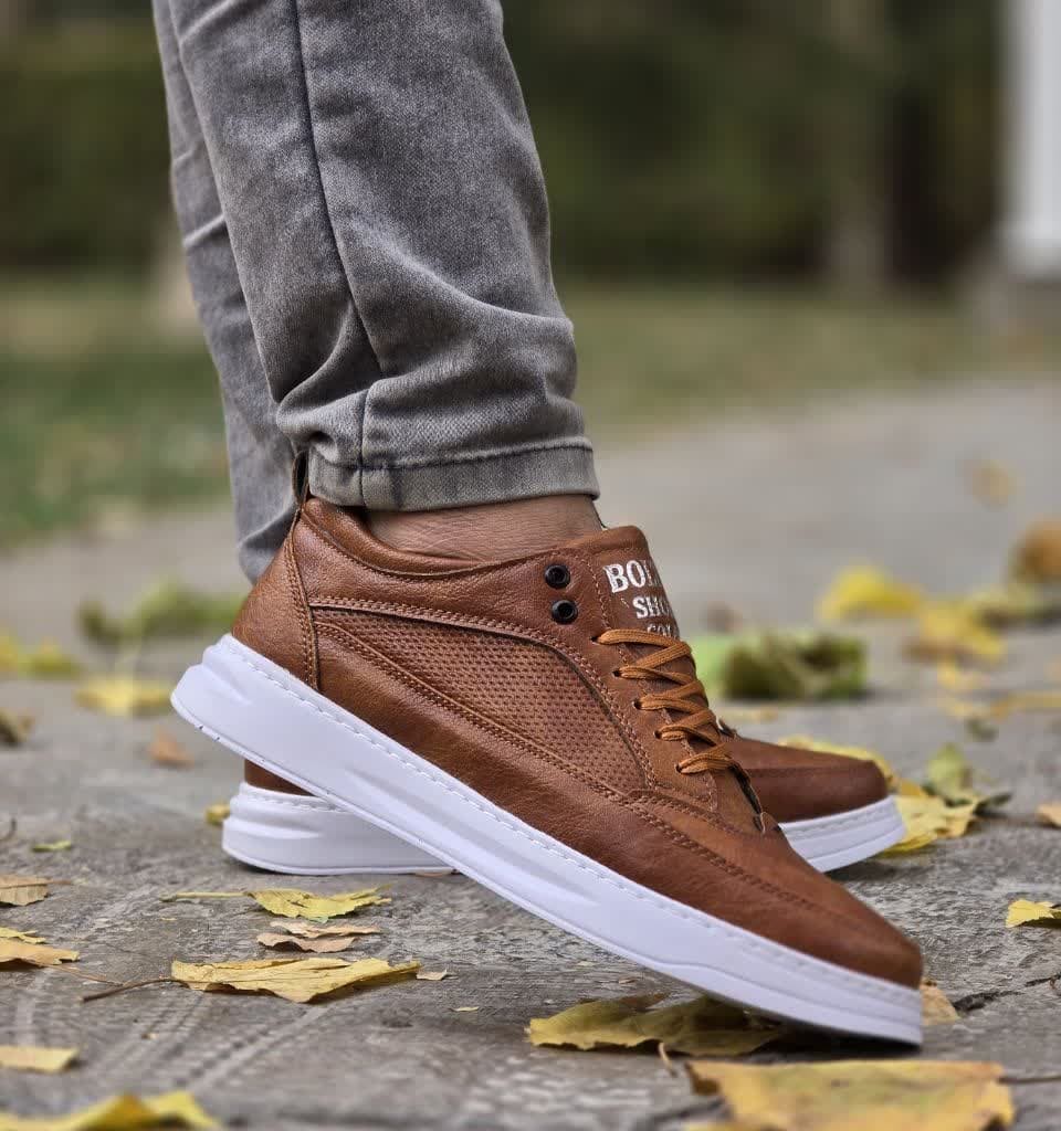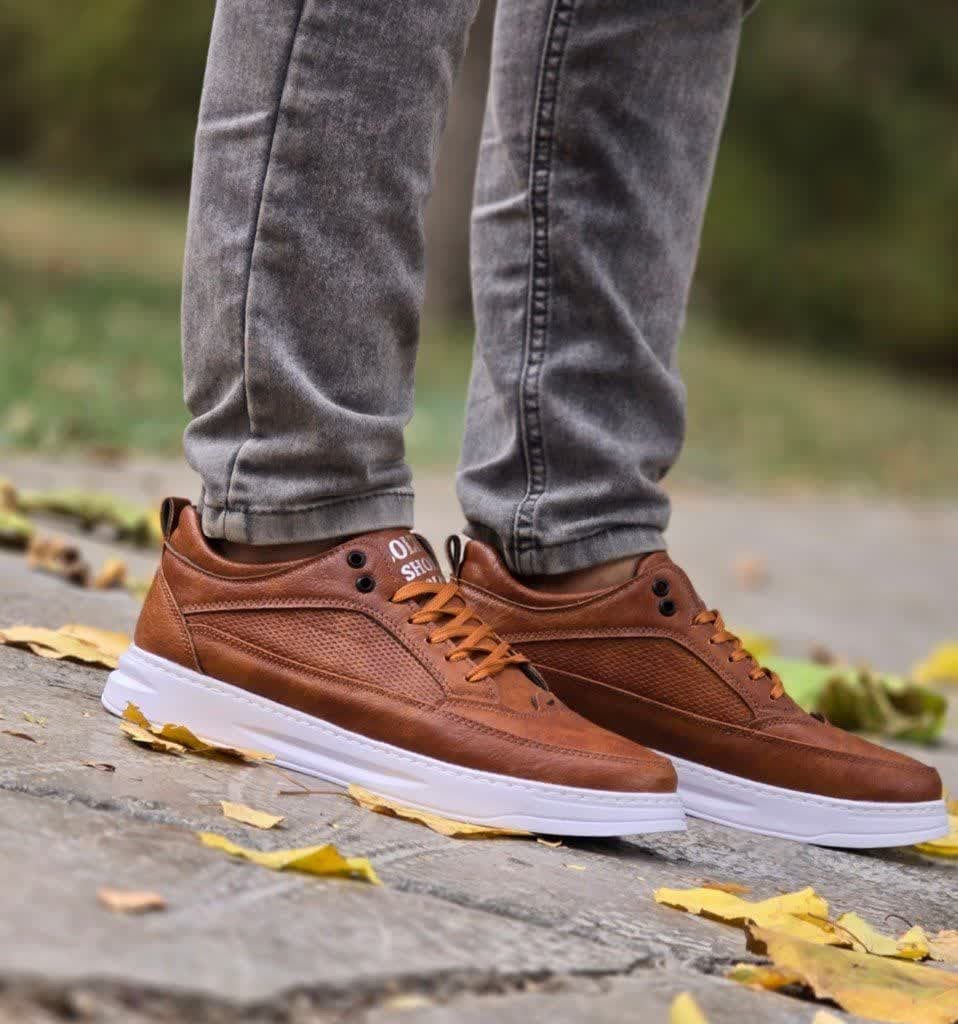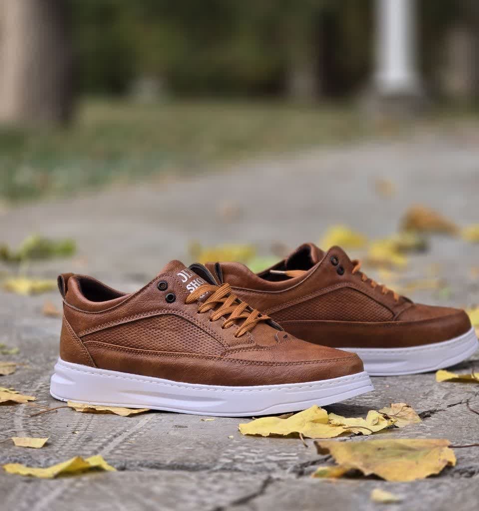 بمب تخفیف این هفته کفش کتونی اسپرت مردانه و پسرانه مدل بولتون رنگ قهوه ای زیره سفید زیبا و یه مدل خاص و بی نظیر با ارسال رایگان