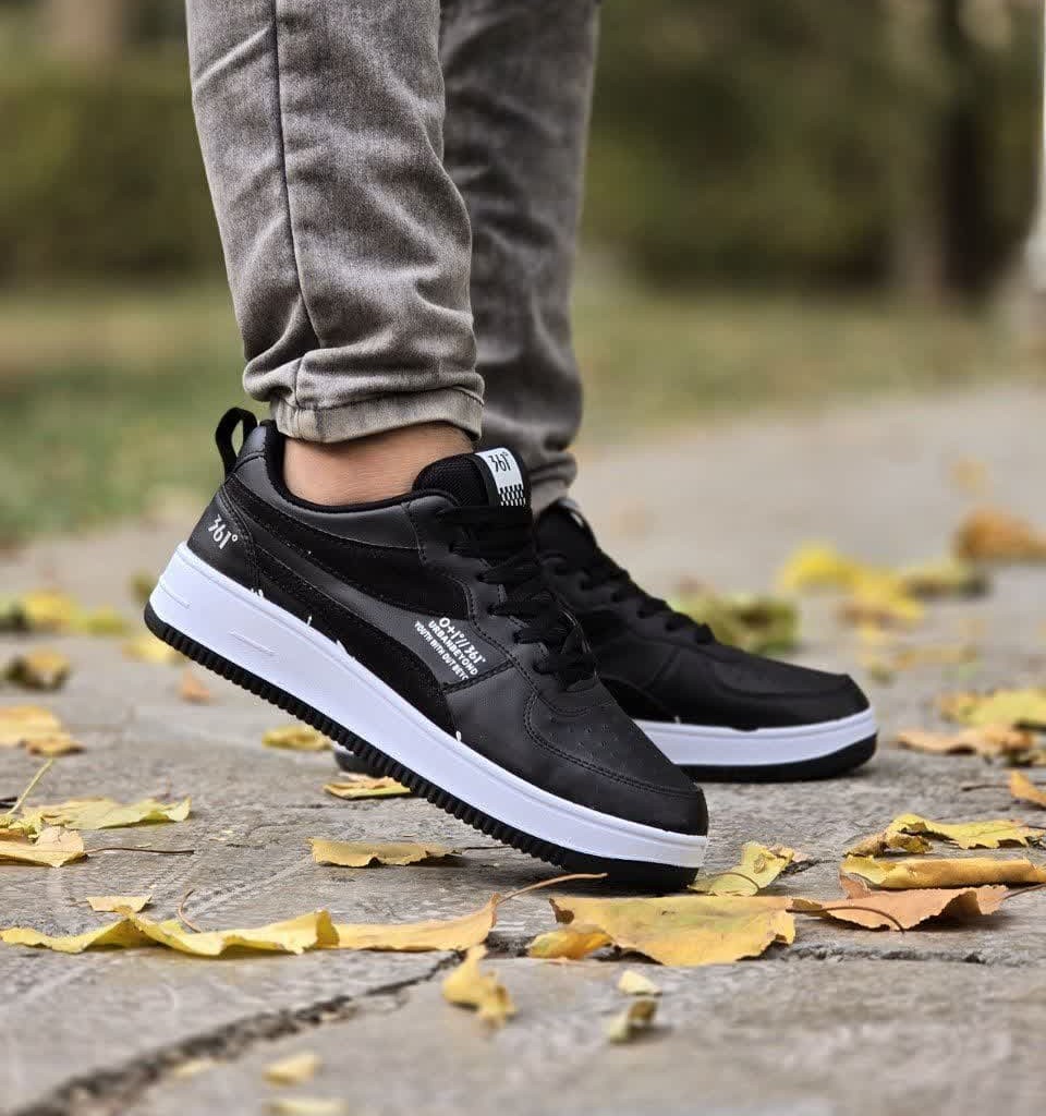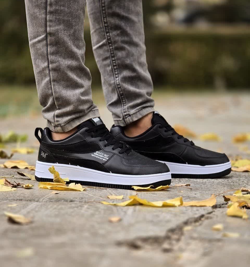 حراج فوق العاده کفش اسپرت پرطرفدار مردانه مدل 361 رنگ مشکی زیره سفید فوق العاده راحت و سبک زیره پیو با ارسال رایگان