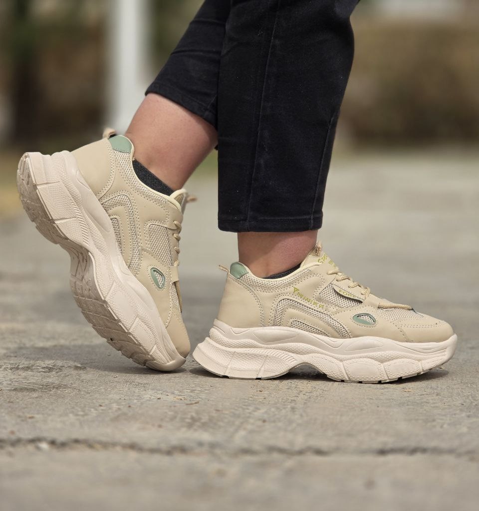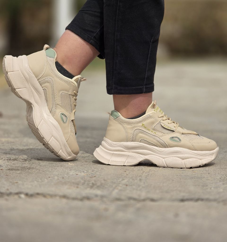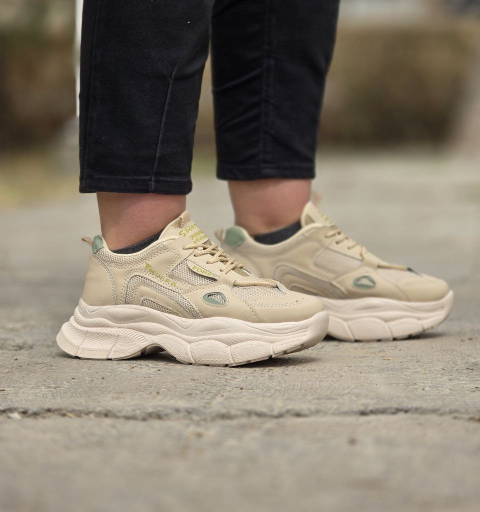 فروش بی نظیر کفش کتونی دخترانه و زنانه مدل FOREV رنگ کرم زیره پیو راحت و شیک با ارسال رایگان