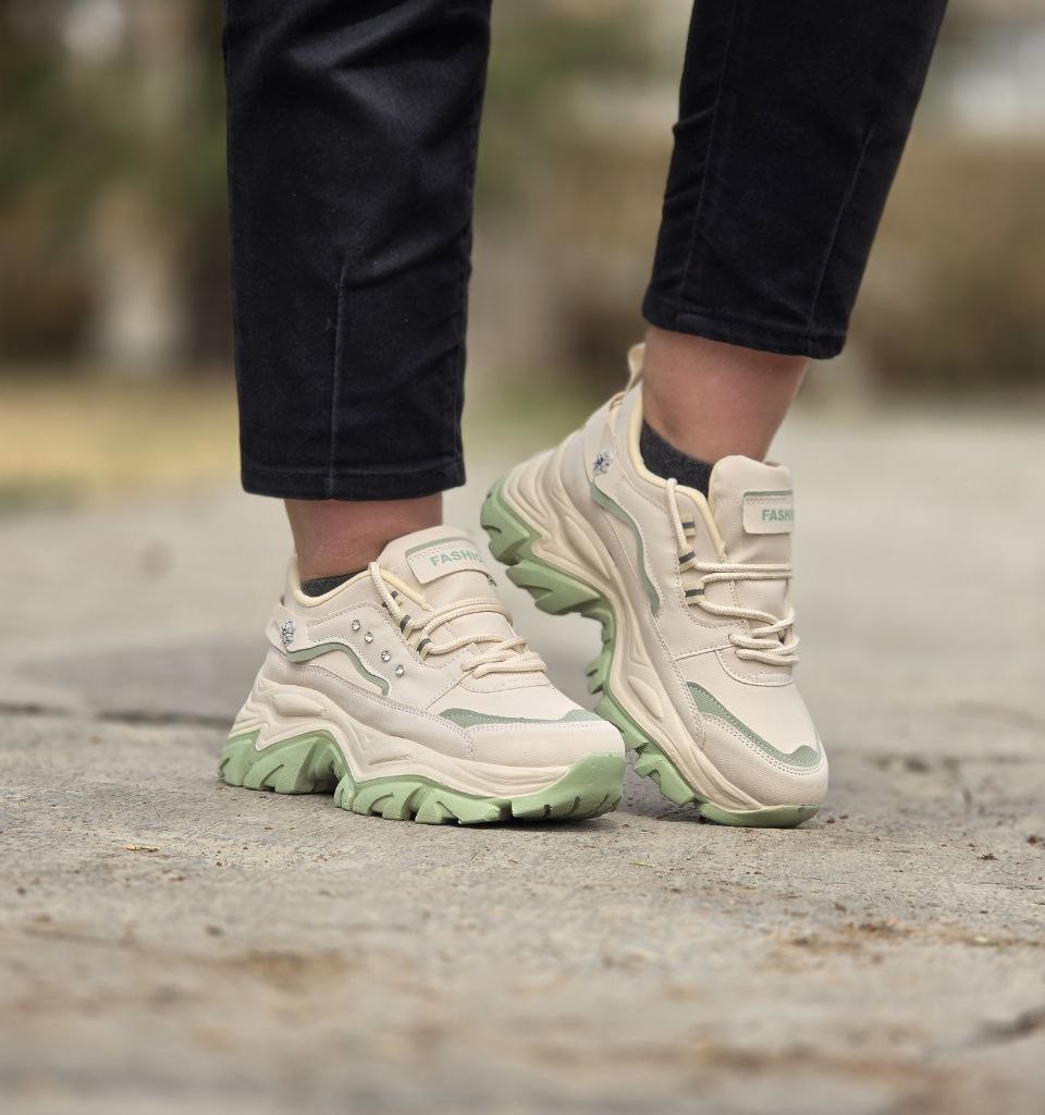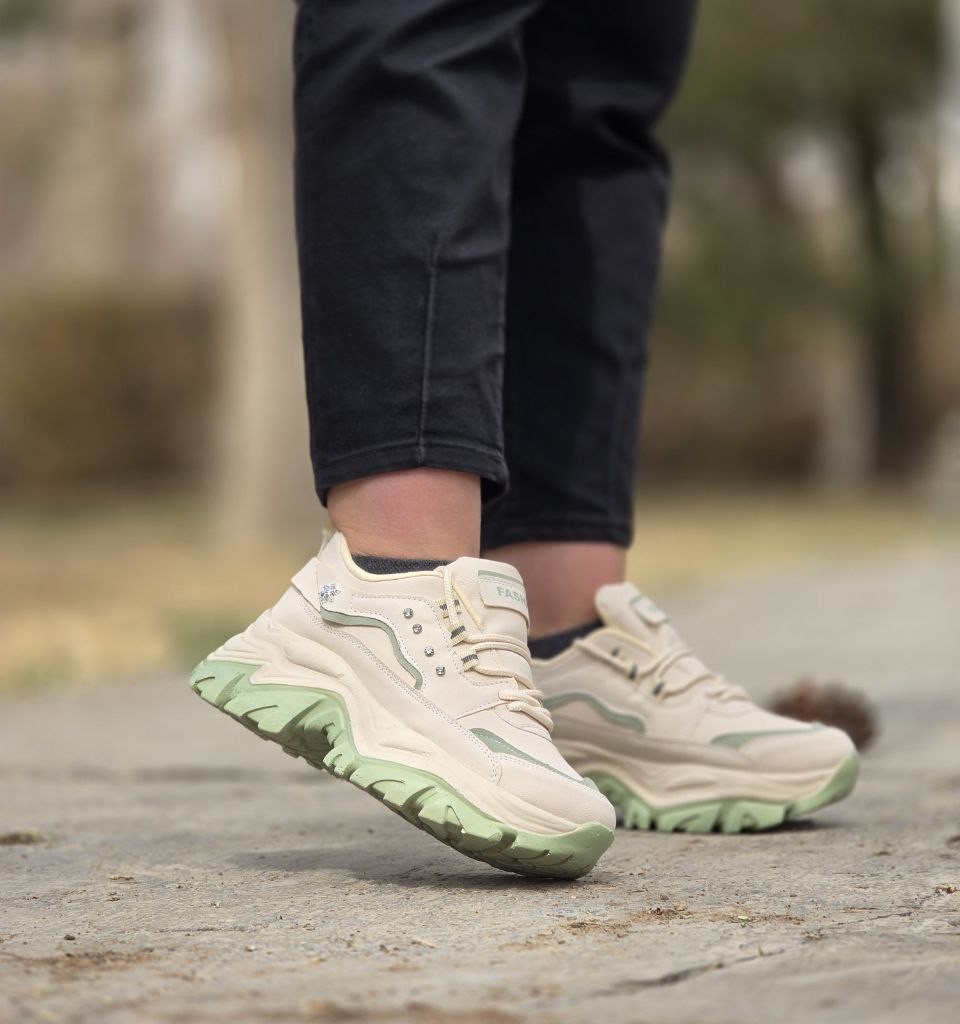 بمب تخفیف امروز کفش کتونی اسپرت دخترانه و زنانه مدل فشیون رنگ کرم سبز زیره پیو مقاوم و با کیفیت با ارسال رایگان