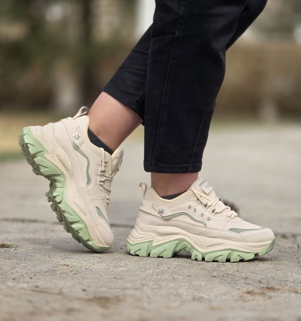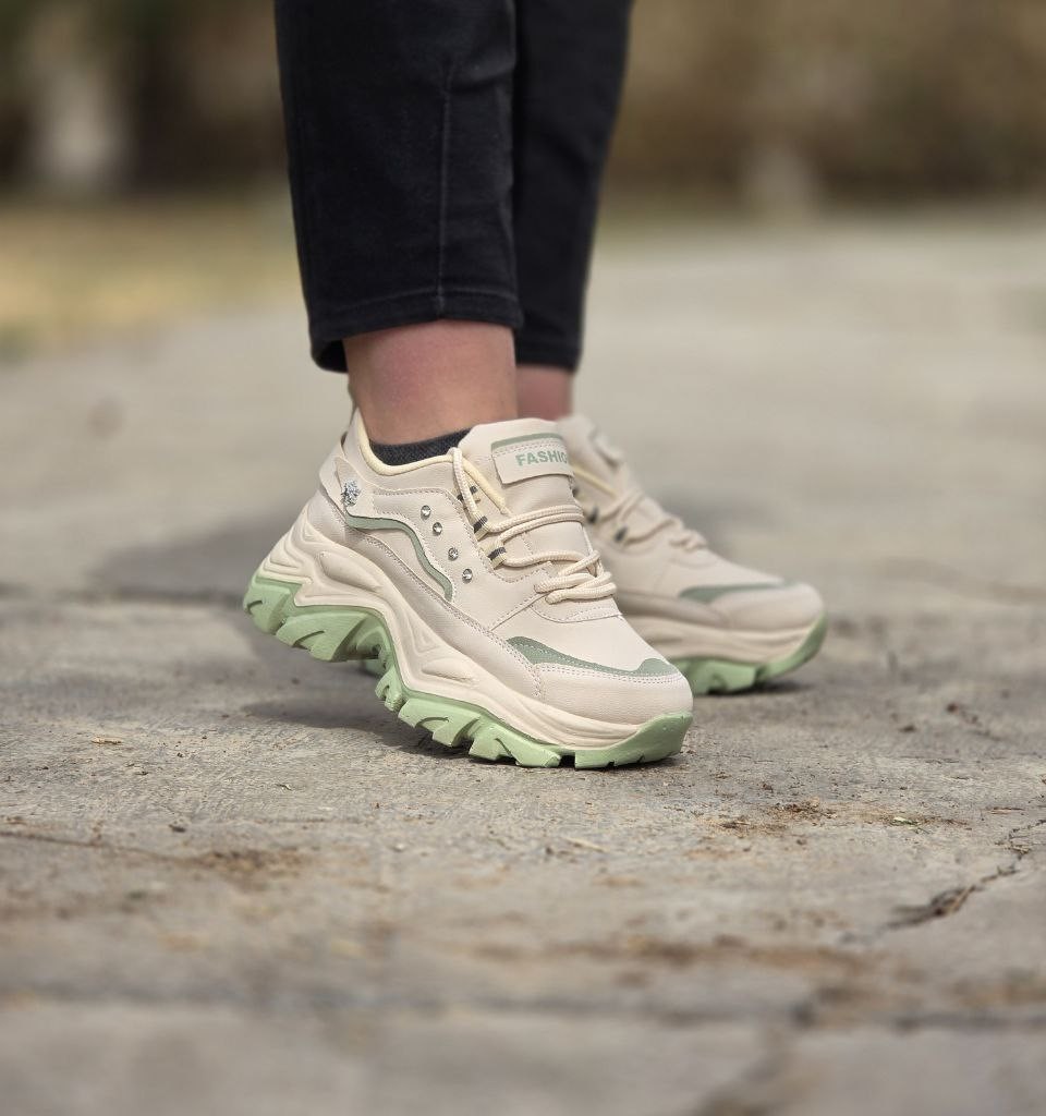 فروش جذاب کفش کتونی اسپرت دخترانه و زنانه مدل فشیون رنگ کرم سبز بی نهایت زیبا و ترند با ارسال رایگان