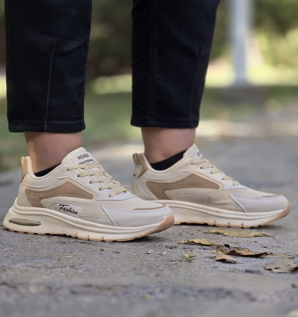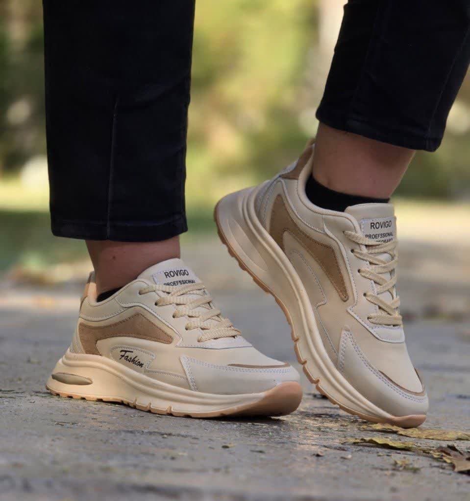 فروش ویژه کفش کتونی اسپرت دخترانه و زنانه مدل جدید رویگو رنگ کرمی یه کار فوق العاده زیبا و مدرن