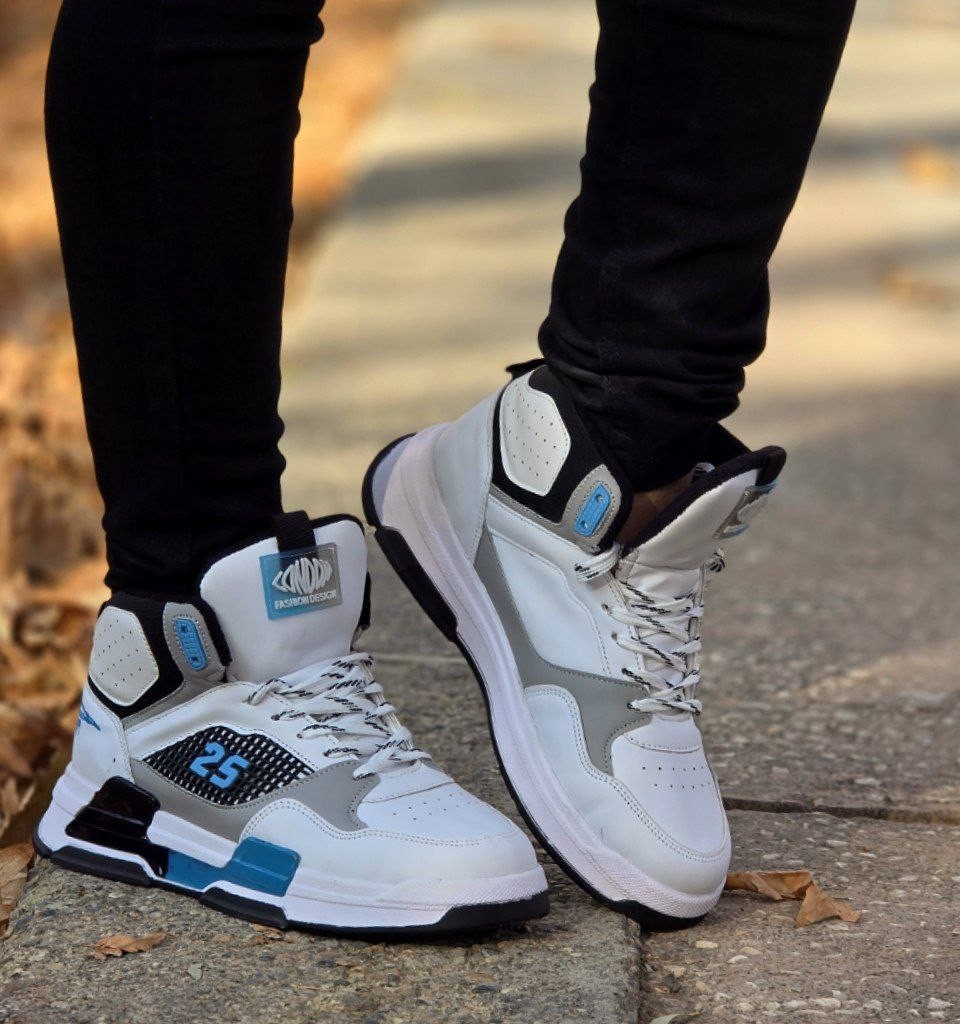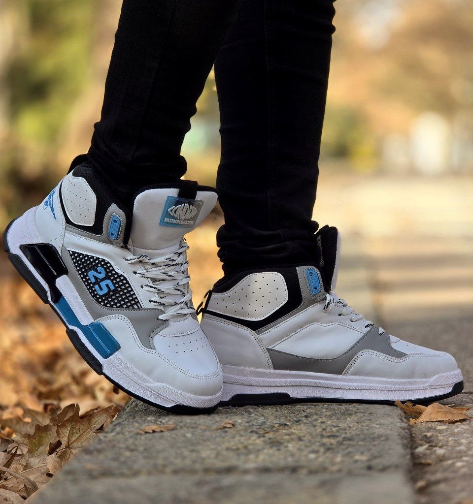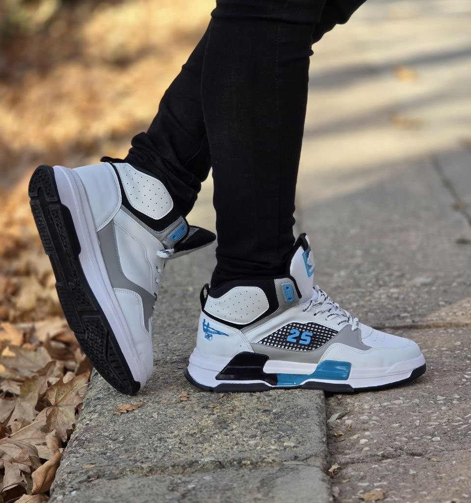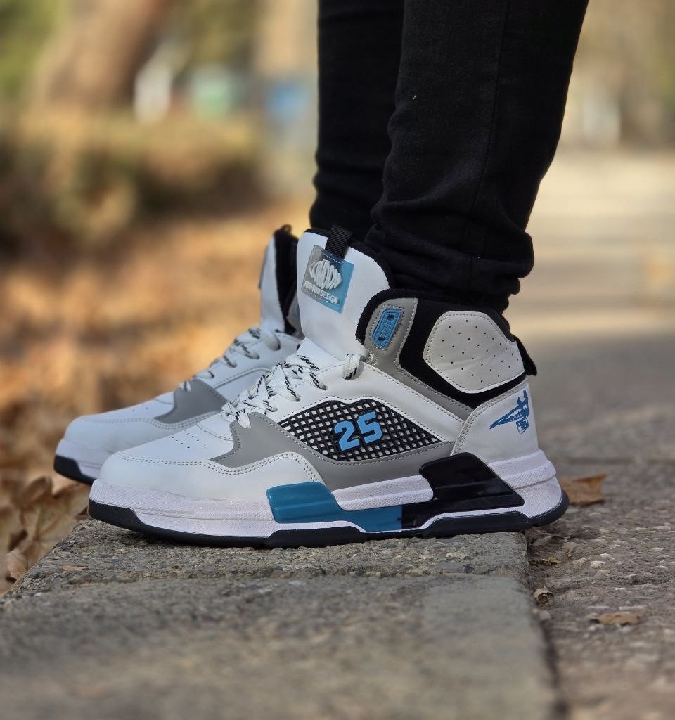 تخفیف هیجان انگیز کفش اسپرت مردانه و پسرانه مدل جردن 25 رنگ سفید آبی یه کار خاص و جوان پسند با ارسال رایگان