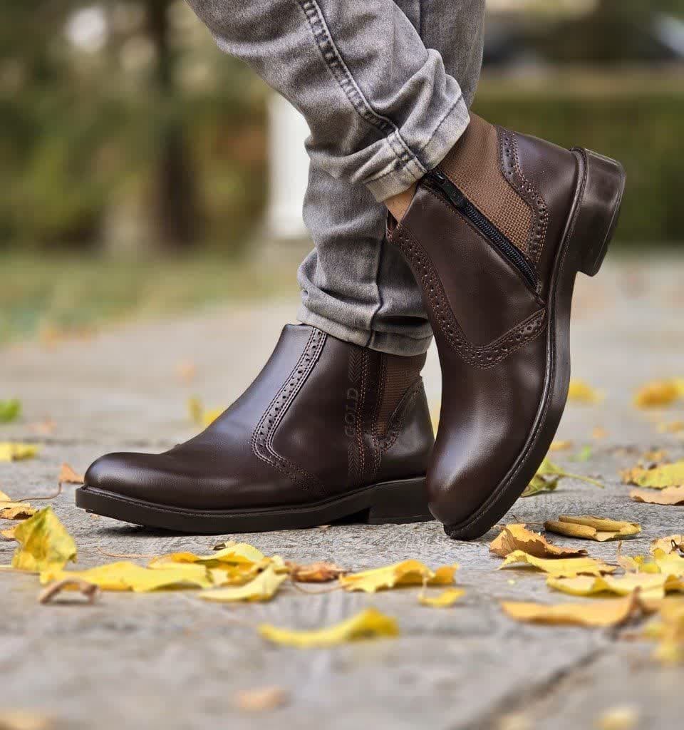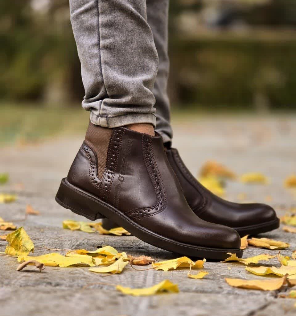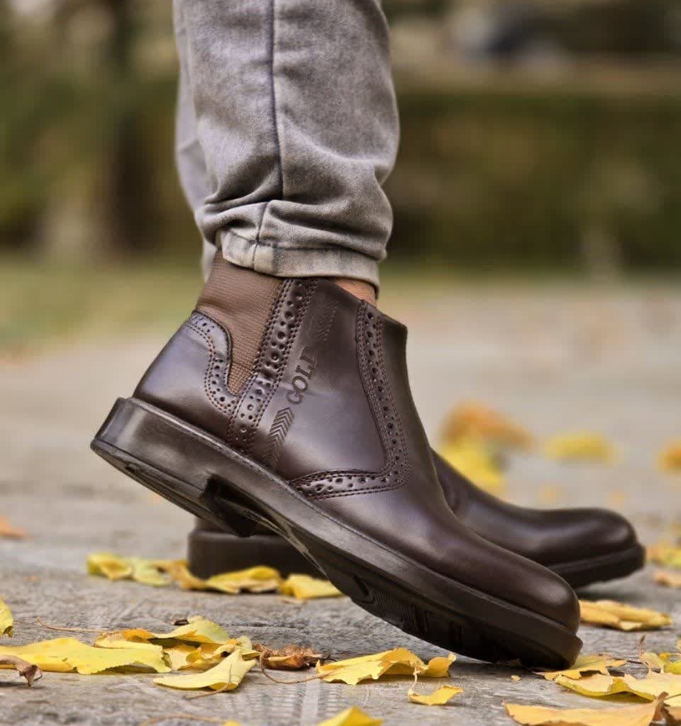 حراج ویژه کفش نیم بوت اسپرت مجلسی مردانه و پسرانه مدل بغل زیپ رنگ قهوه ای تیره جذاب و شیک