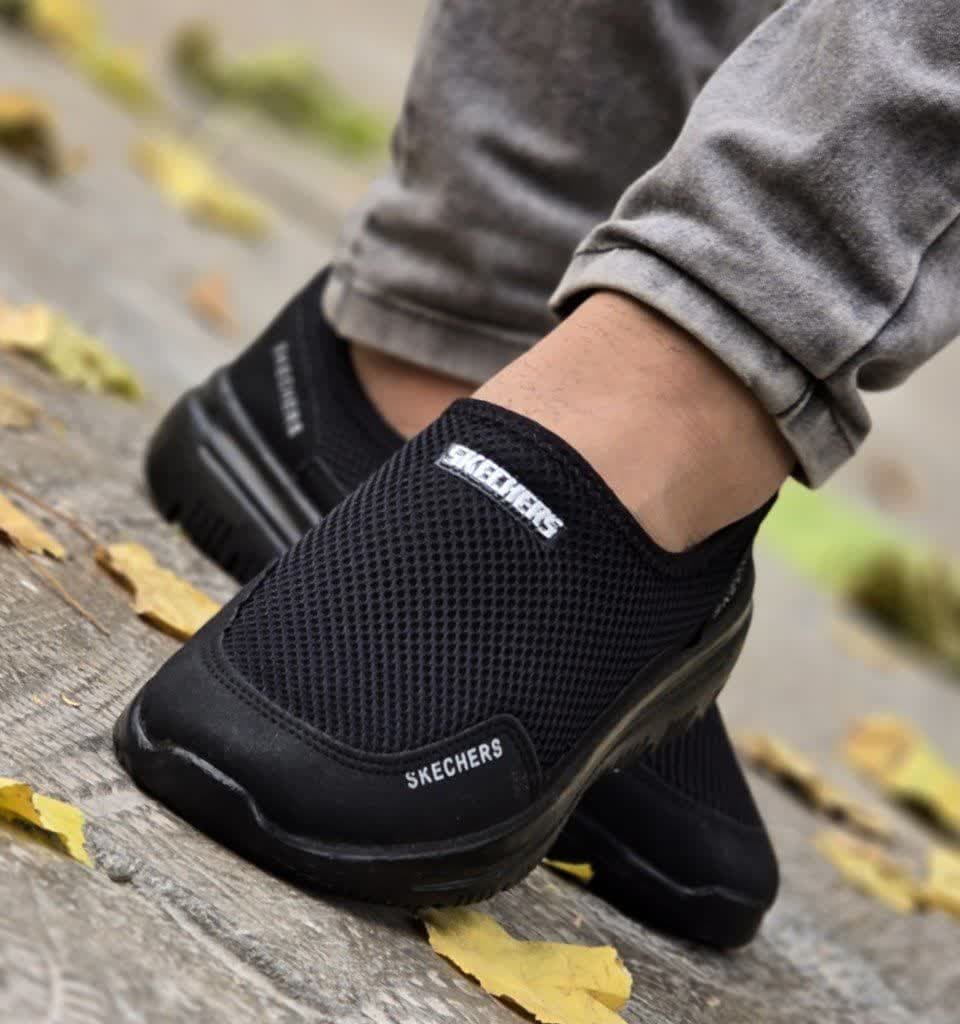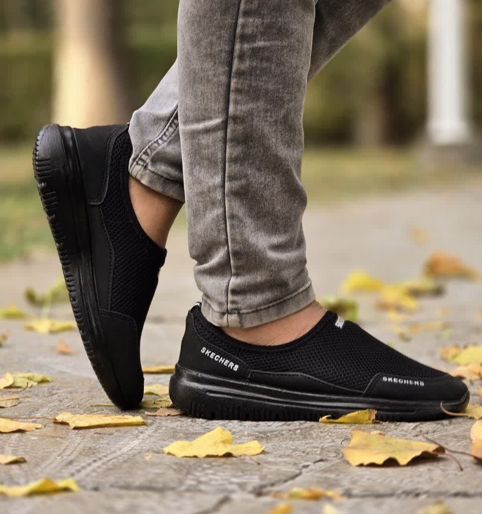 حراج واقعی کفش کتونی اسپرت مردانه و پسرانه مدل اسکیچرز رنگ مشکی یه کار نرم و سبک با ارسال رایگان