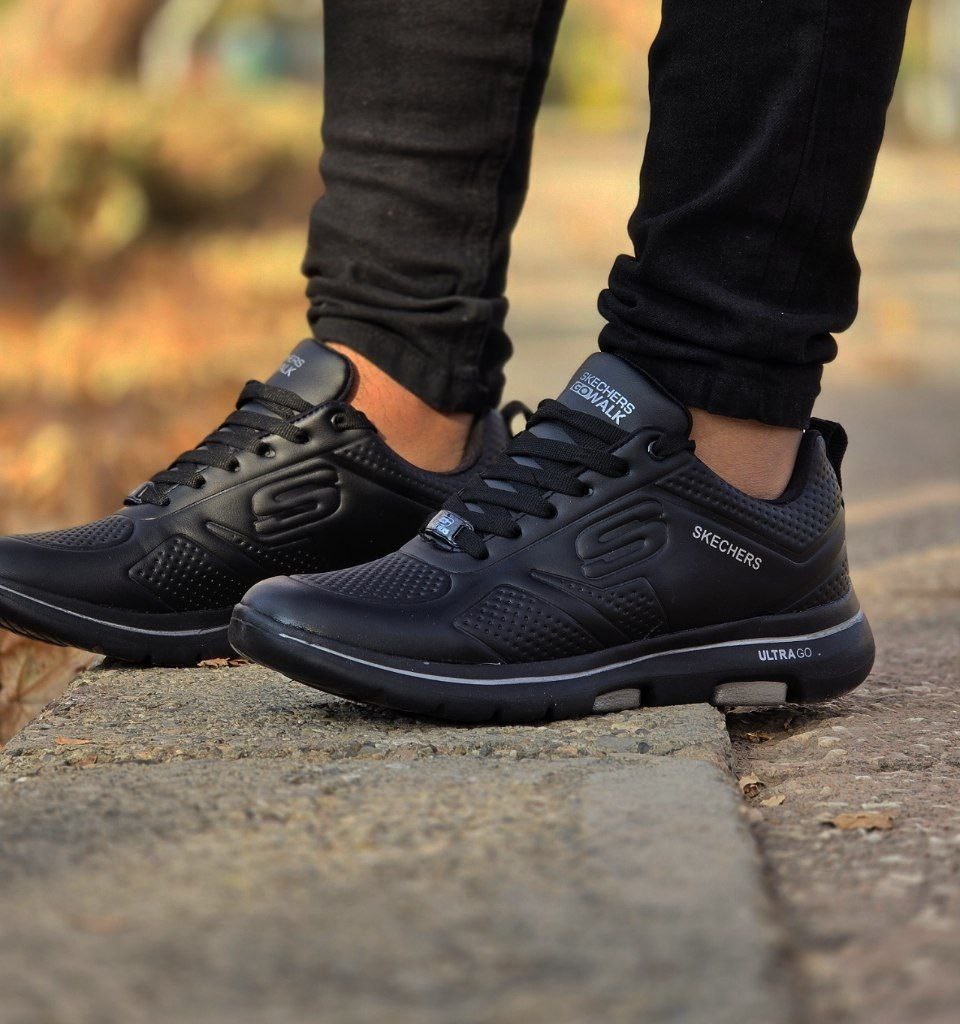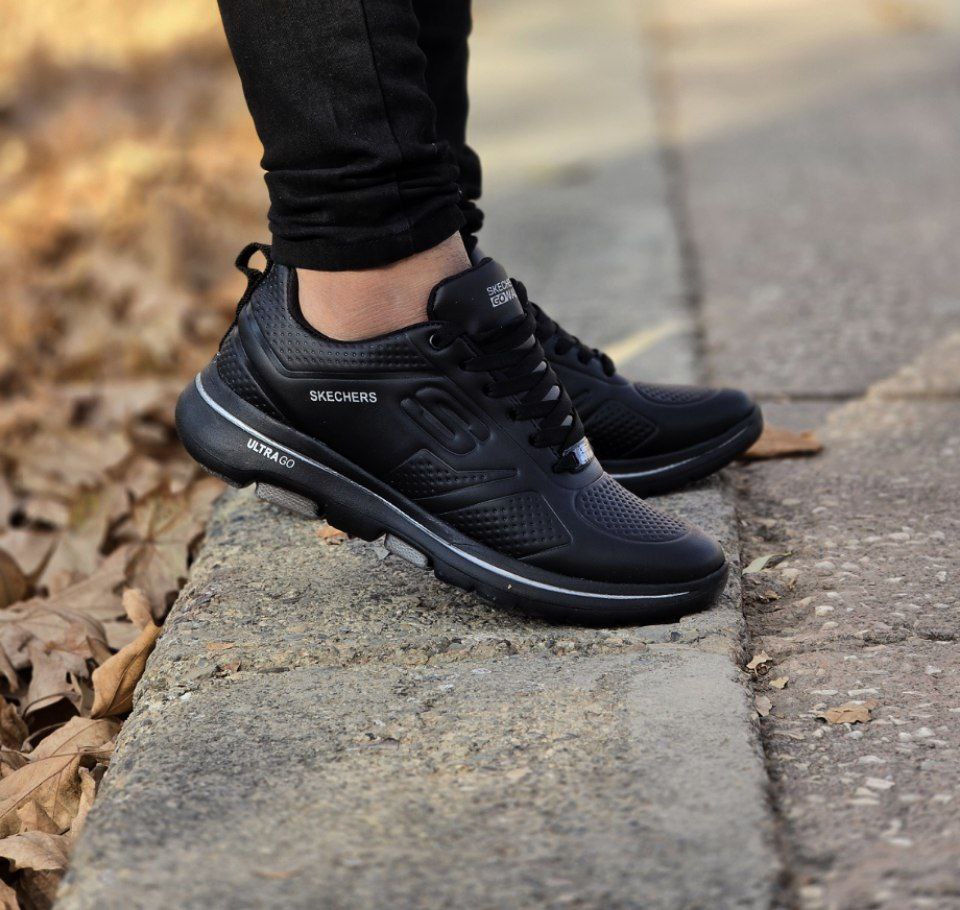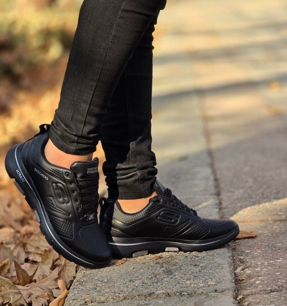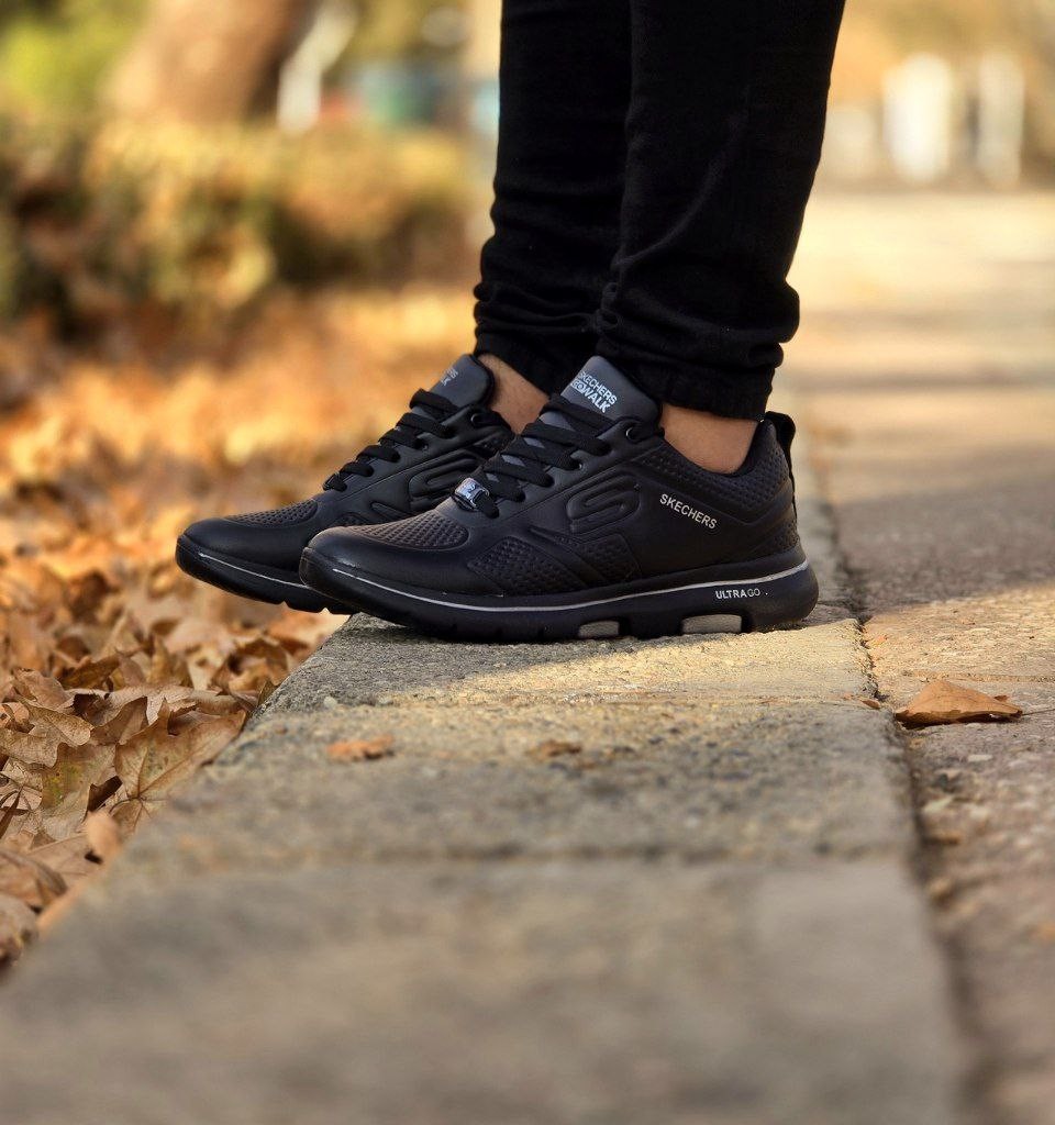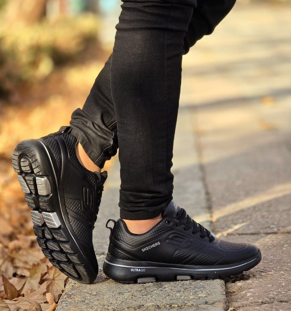 حراج واقعی کفش کتونی اسپرت مردانه و پسرانه مدل اسکیچرز رنگ مشکی تمام مناسب پیاده روی با ارسال رایگان