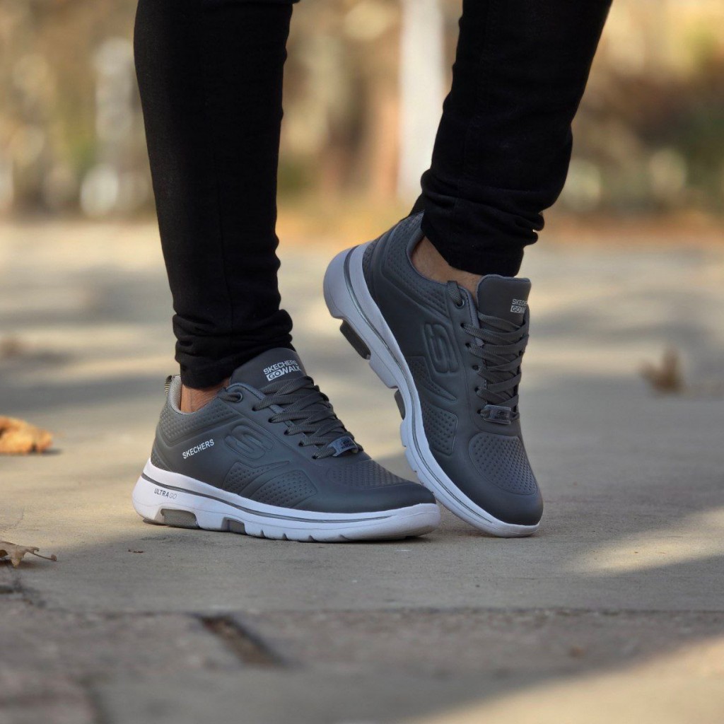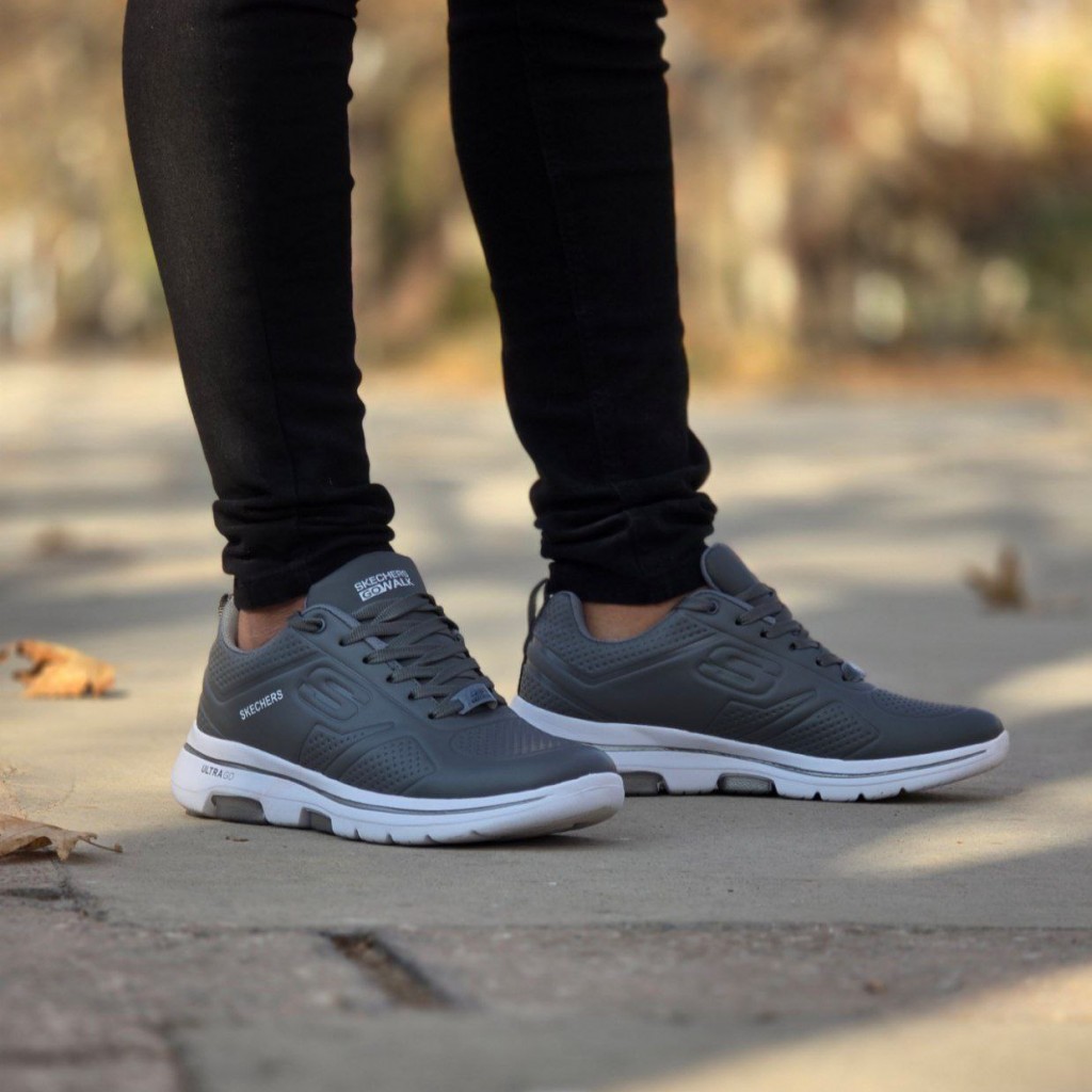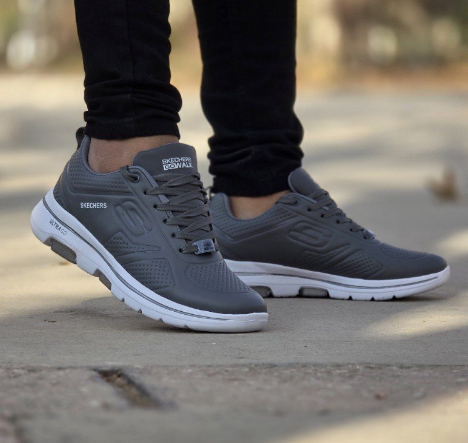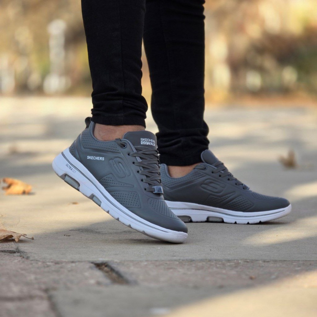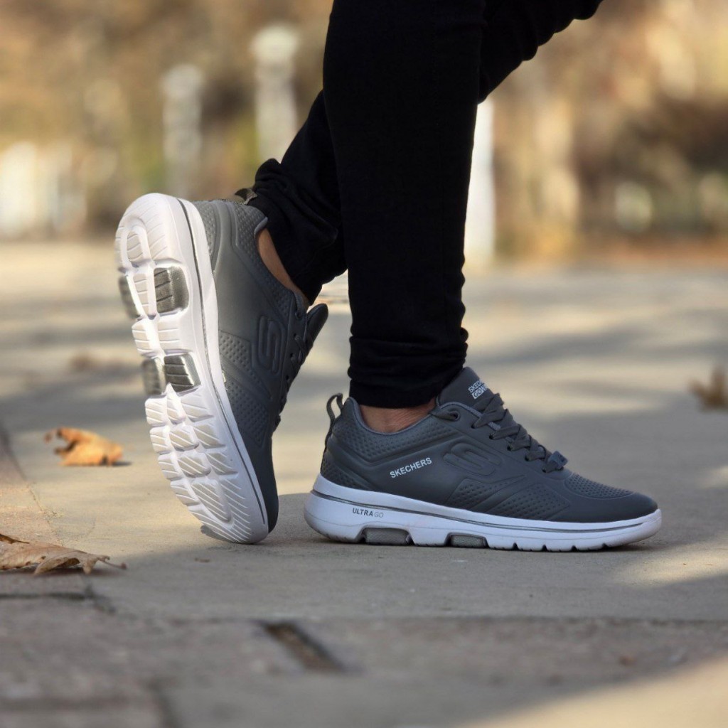 حراج واقعی کفش کتونی اسپرت مردانه و پسرانه مدل اسکیچرز رنگ طوسی تیره جذاب ومناسب افراد خاص با ارسال رایگان