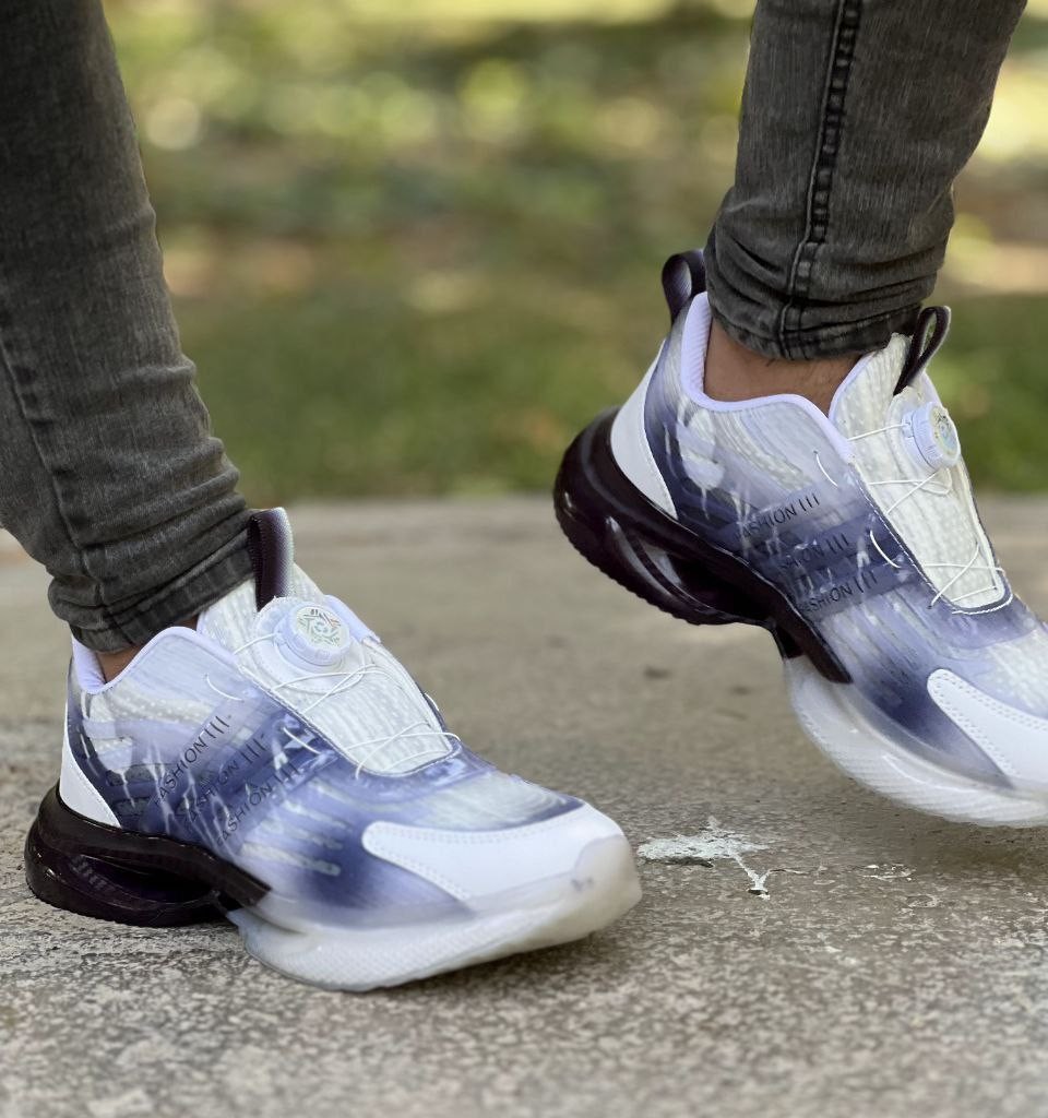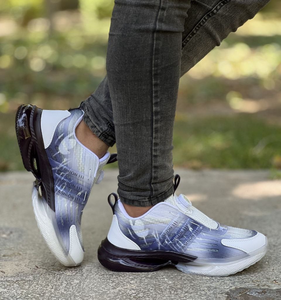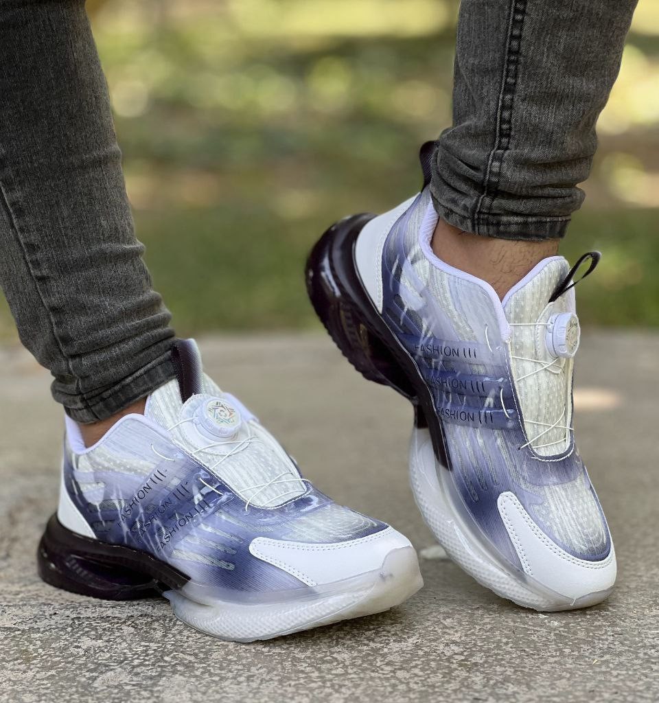 حراج فوق العاده کفش اسپرت مردانه مدل پمپی رنگ سفید آبی زیره پیو بی نهایت راحت و سبک با ارسال رایگان