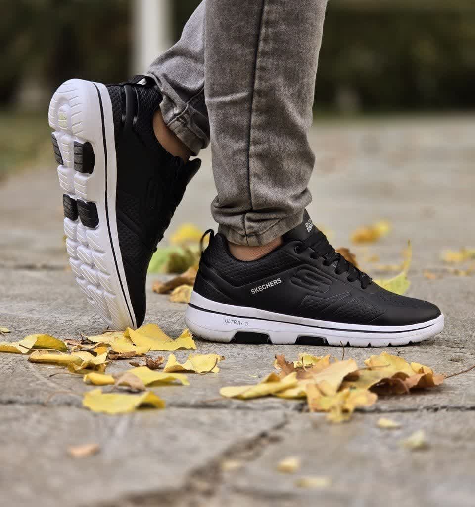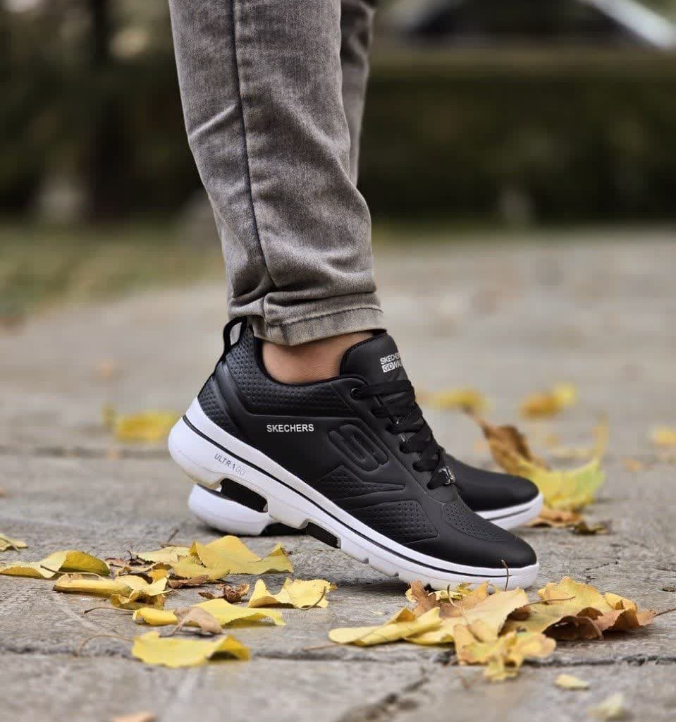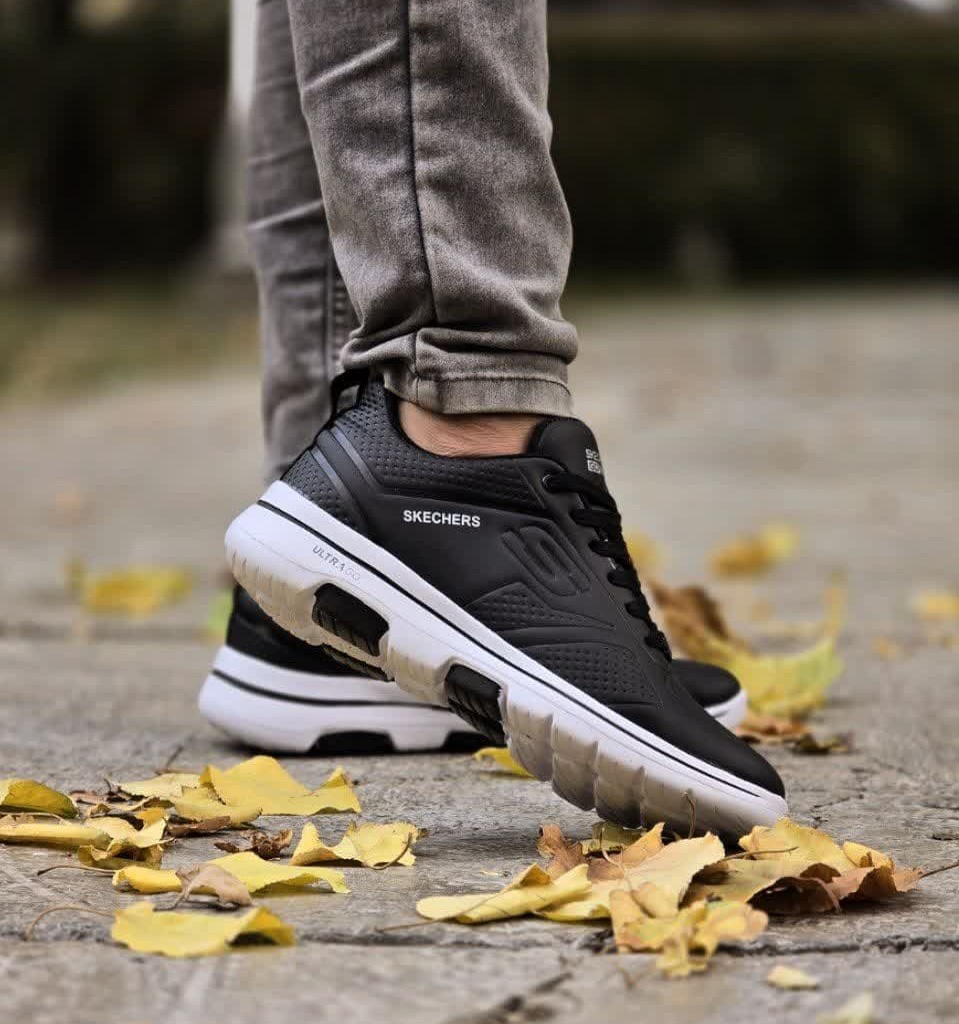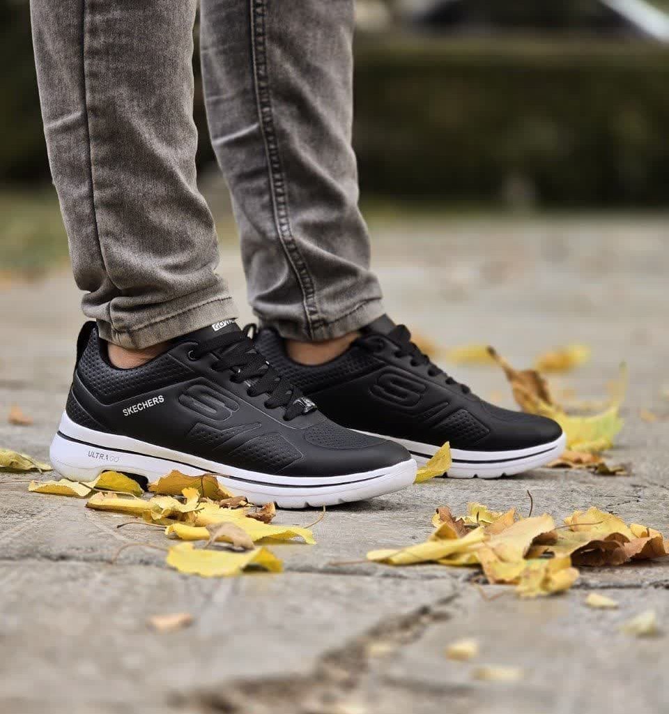 فروش جذاب این هفته کفش کتونی اسپرت مردانه مدل اسکیچرز رنگ مشکی زیره سفید زیباو بی نهایت خوش پا