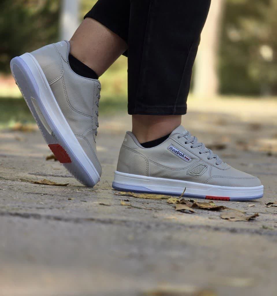 حراج باورنکردنی کفش اسپرت دخترانه مدل ریبوک زیره راحت و زیبا رنگ طوسی زیره سفید بی نهایت خاص با ارسال رایگان