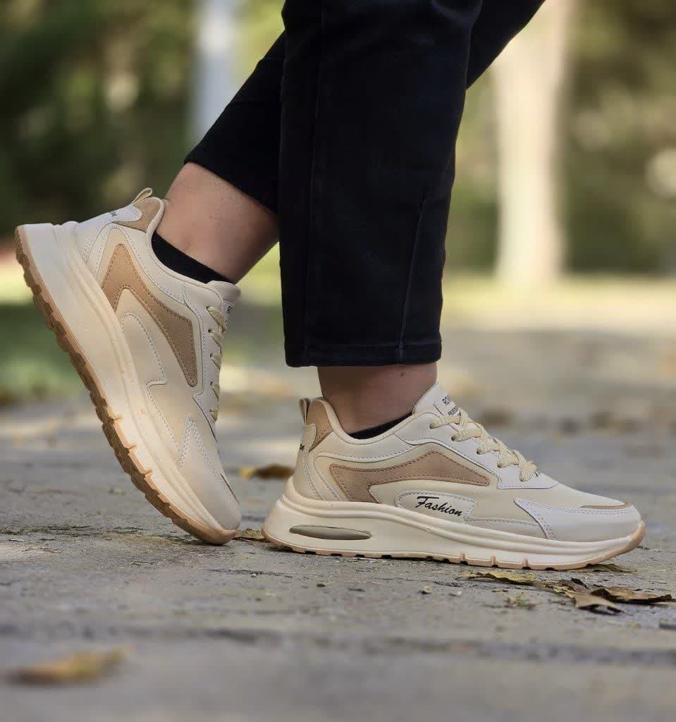 حراج ویژه کتونی اسپرت زنانه و دخترانه رنگ کرمی مدل رویگو زیره پیو یه کار پر فروش و زیبا با ارسال رایگان