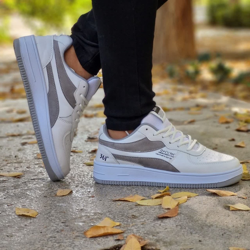 حراج ویژه کفش کتونی اسپرت مردانه و پسرانه مدل جدید 361 رنگ سفید طوسی فوق العاده زیبا و جدید