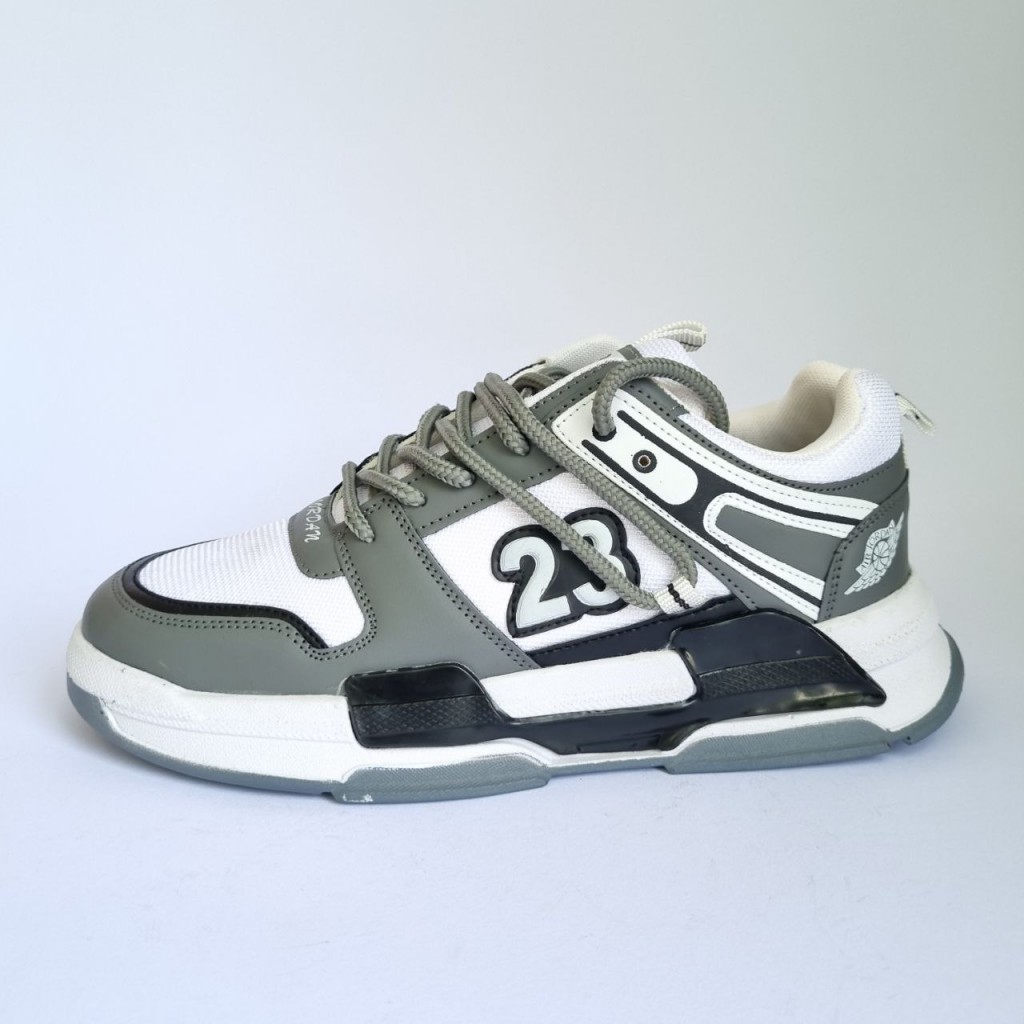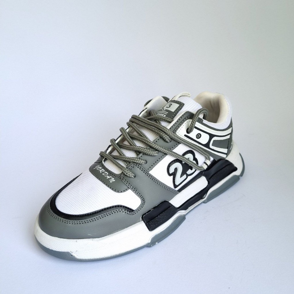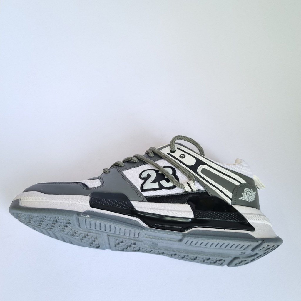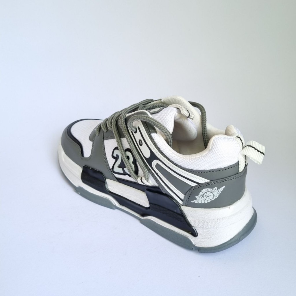 فروش جدید کفش اسپرت مردانه و پسرانه مدل جردن 23 نرم و مقاوم رنگ طوسی سفید مشکی خاص