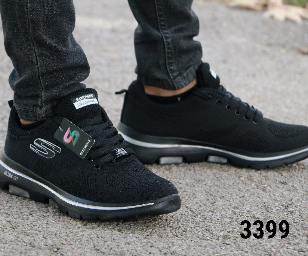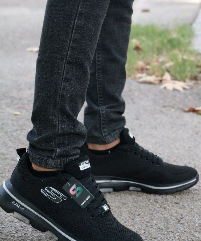 حراجی کفش کتونی اسپرت مدل اسکیچرز برای پیاده روی زیره تزریق با کیفیت عااالی مردانه پسرانه به رنگ مشکی با ارسال رایگان کد 3399