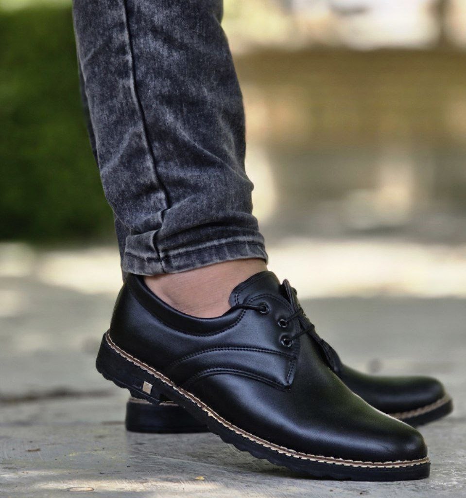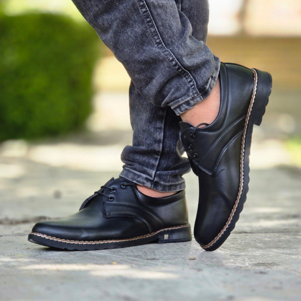 تخفیف فوق العاده کفش مجلسی مردانه پسرانه بندی شیک و جذاب رنگ مشکی باارسال رایگان