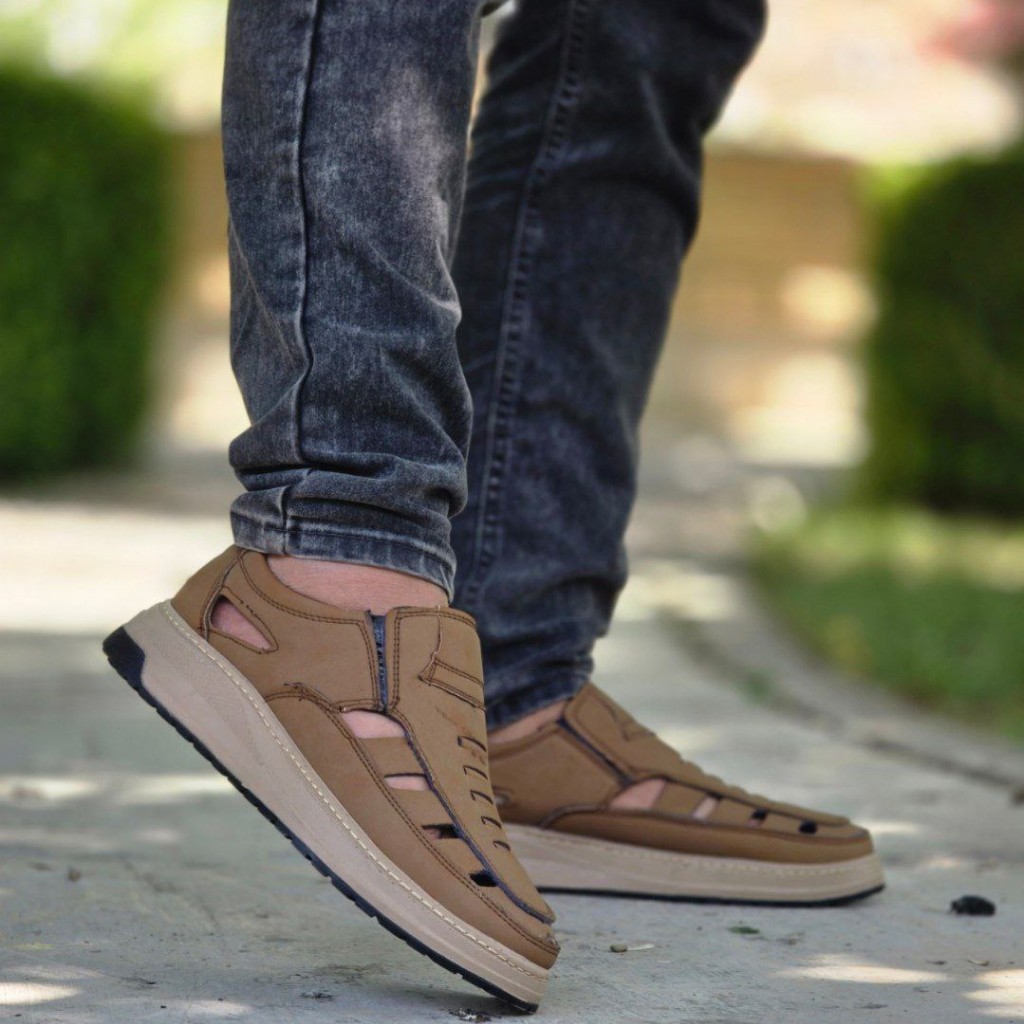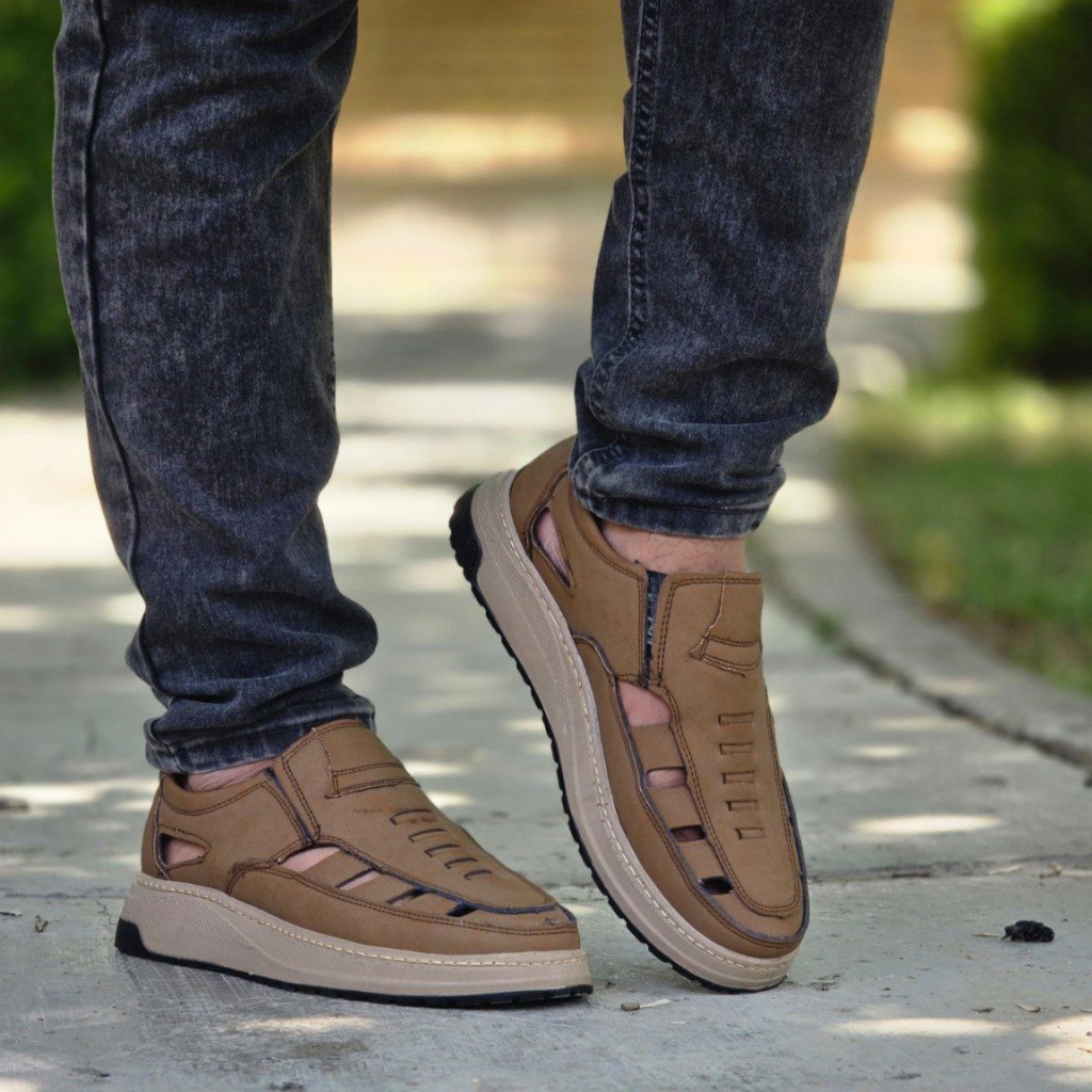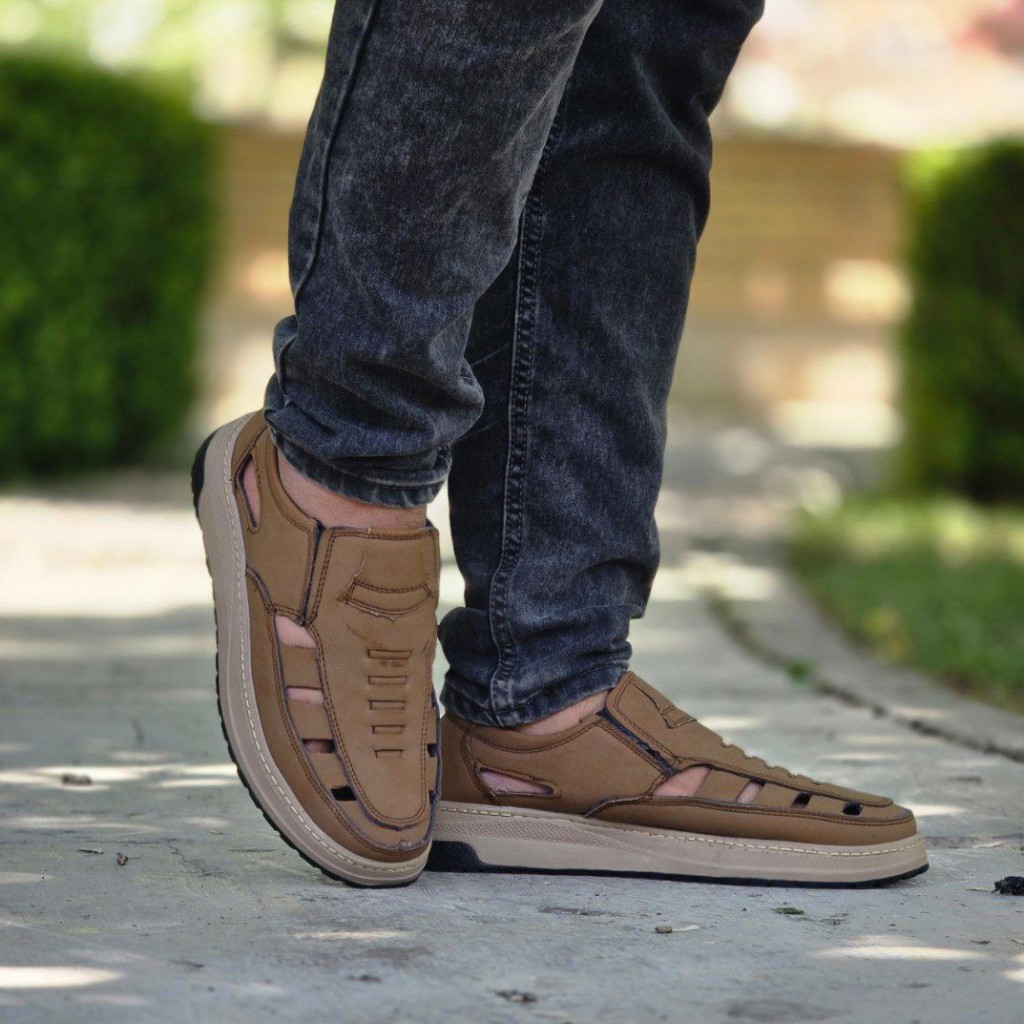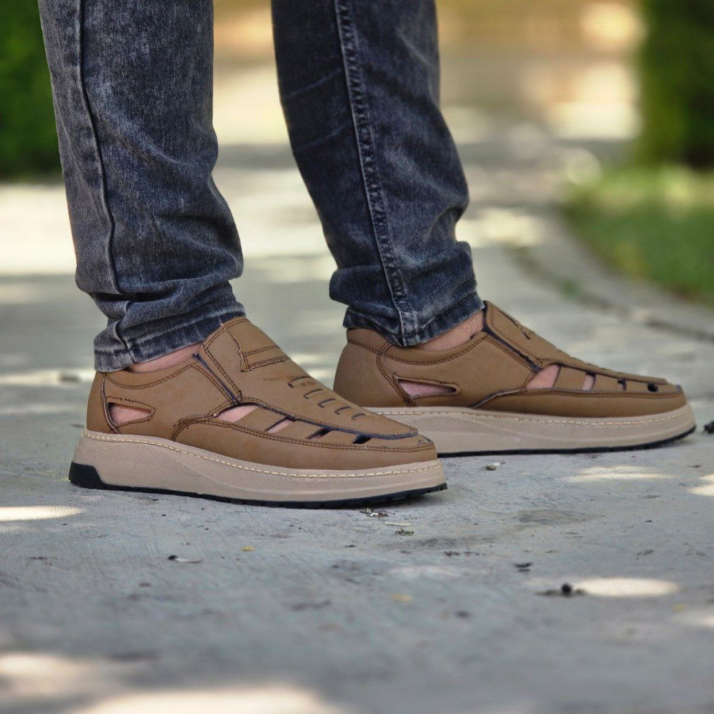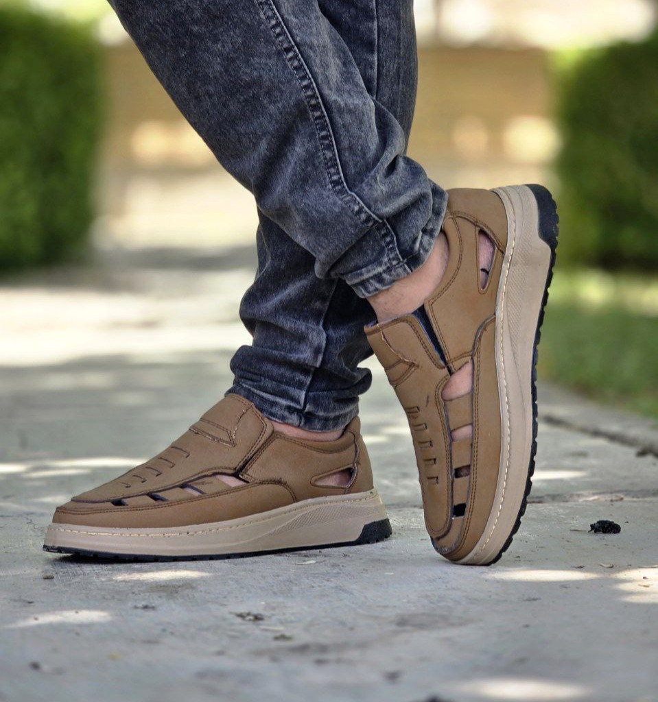 تخفیف ویژه کفش تابستانه مردانه شیک و راحت رنگ قهوه ای زیره کرم با ارسال رایگان