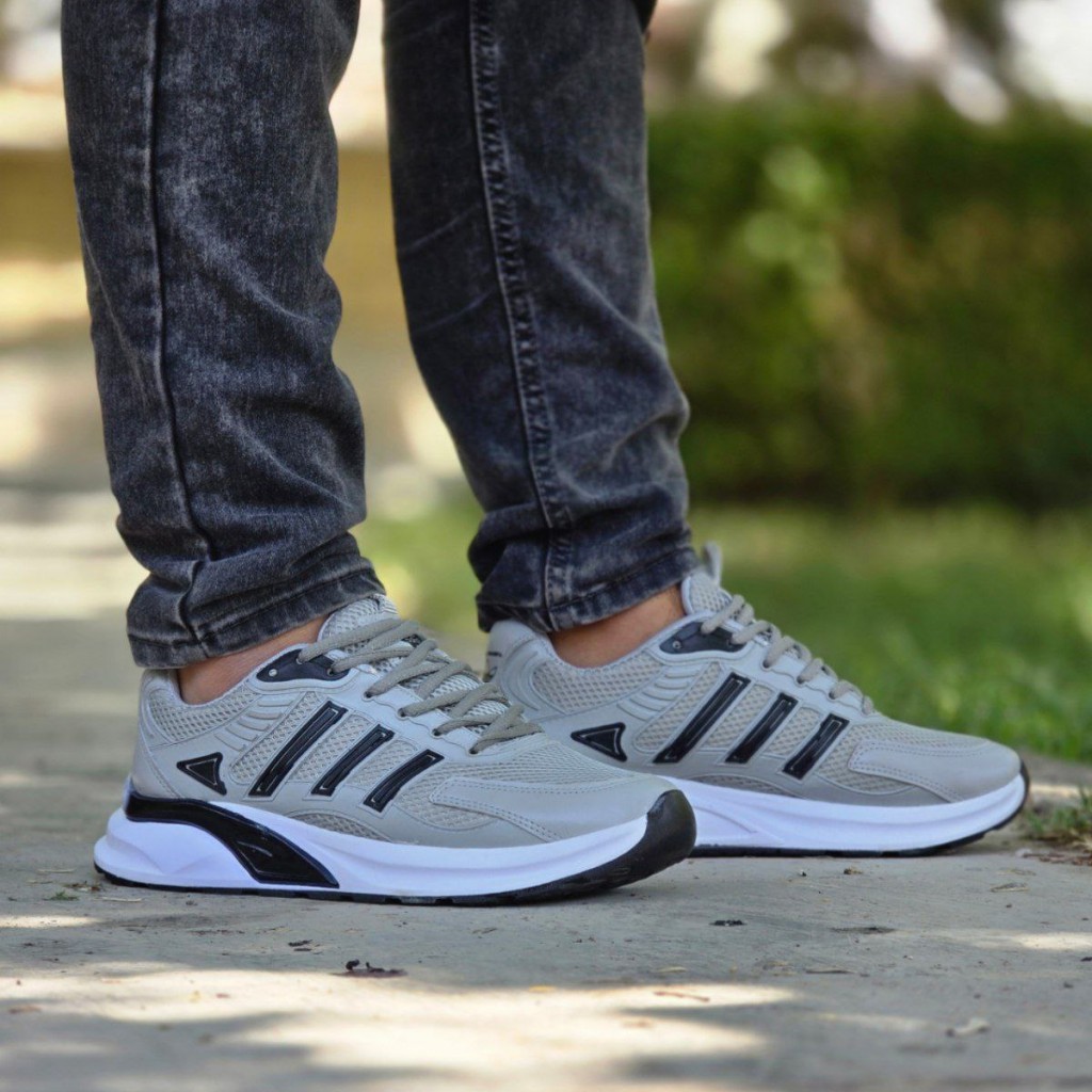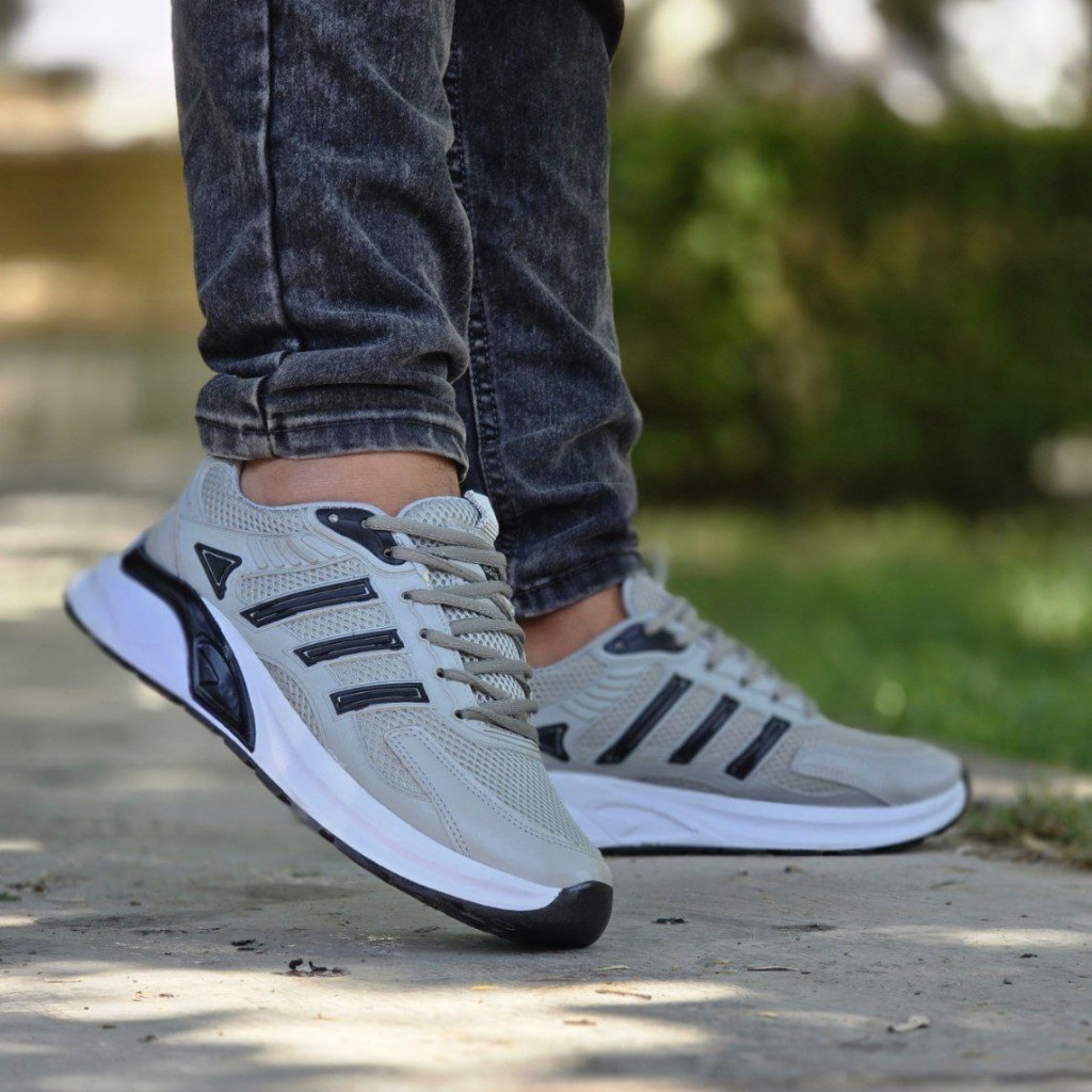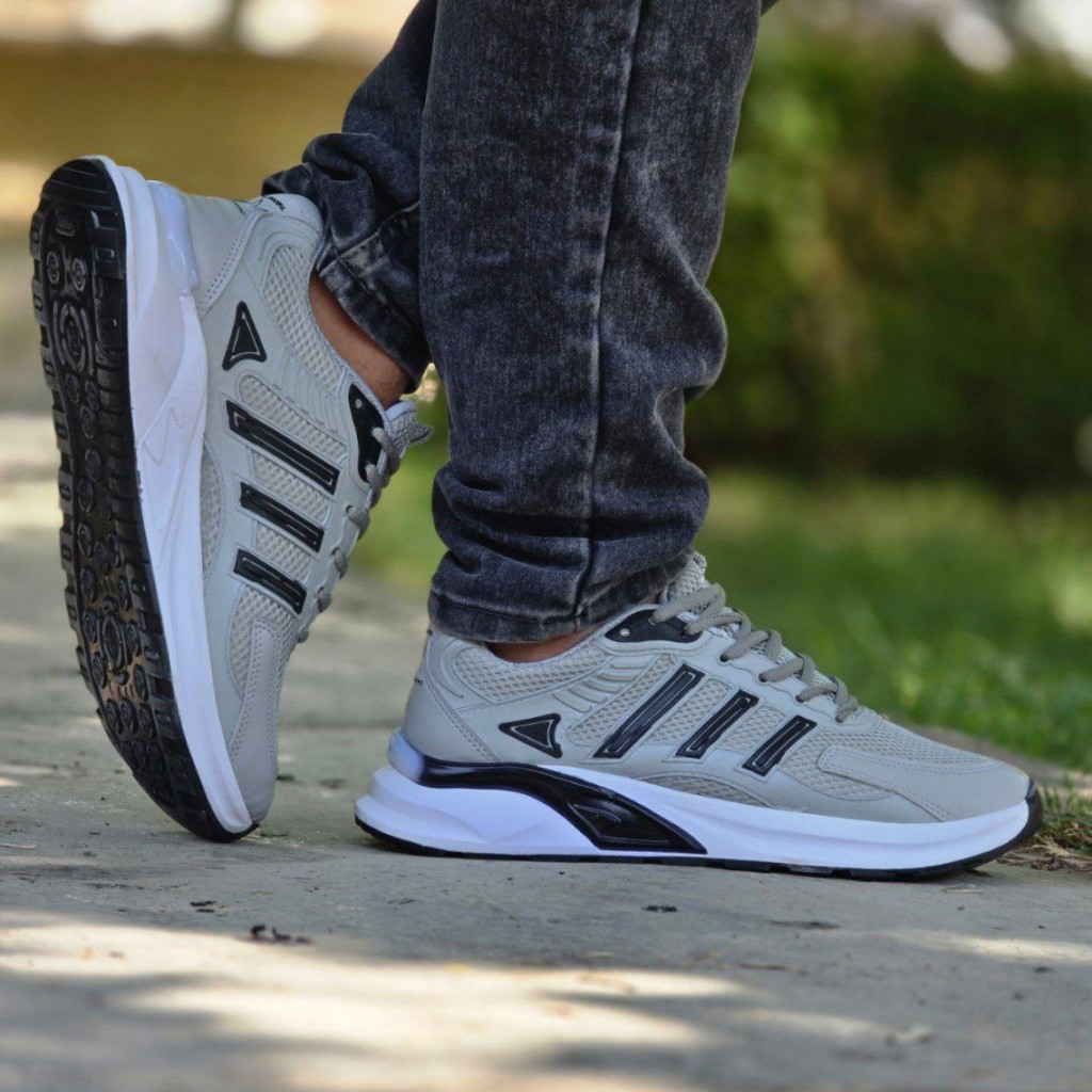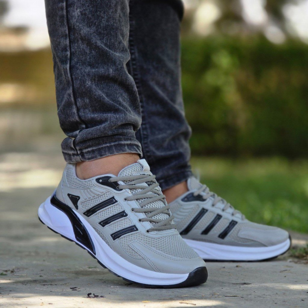 حراج خاص کفش اسپرت مردانه و پسرانه مدل آدیداس شیک و خاص رنگ طوسی مشکی با ارسال رایگان