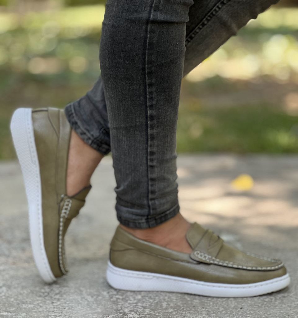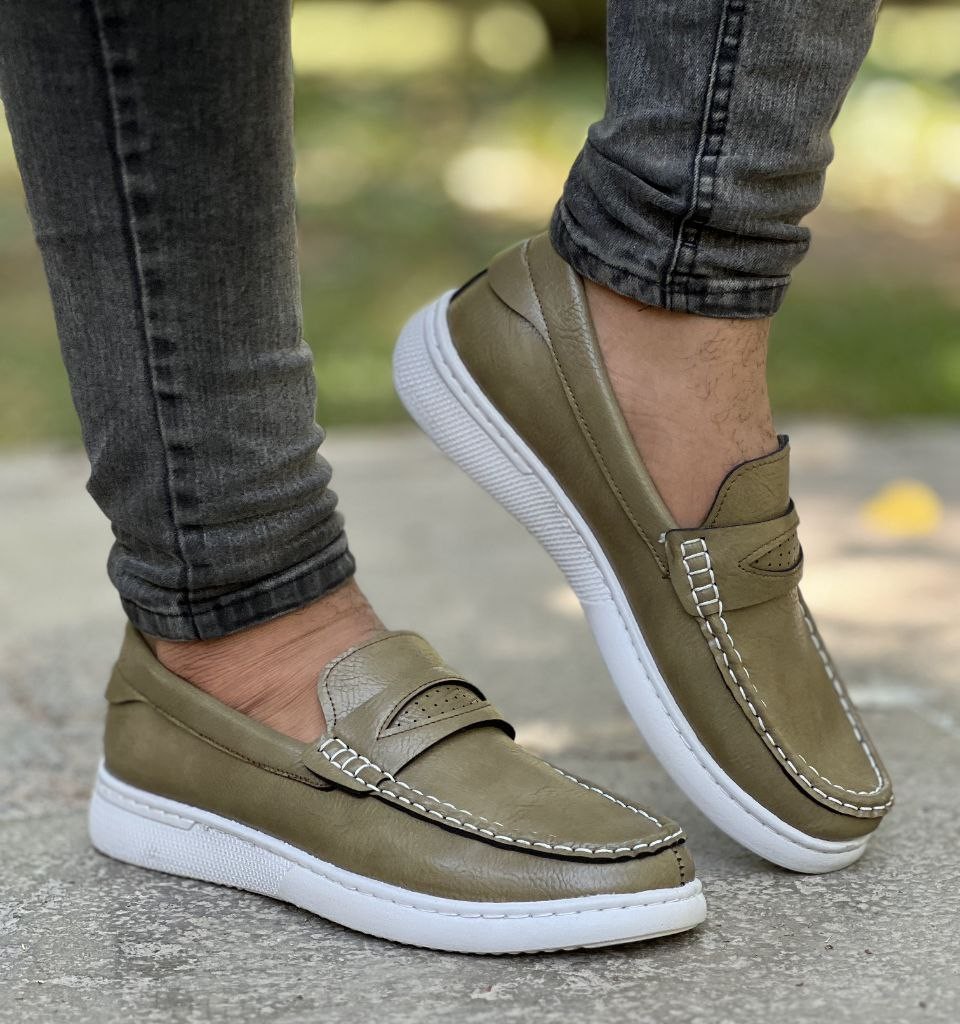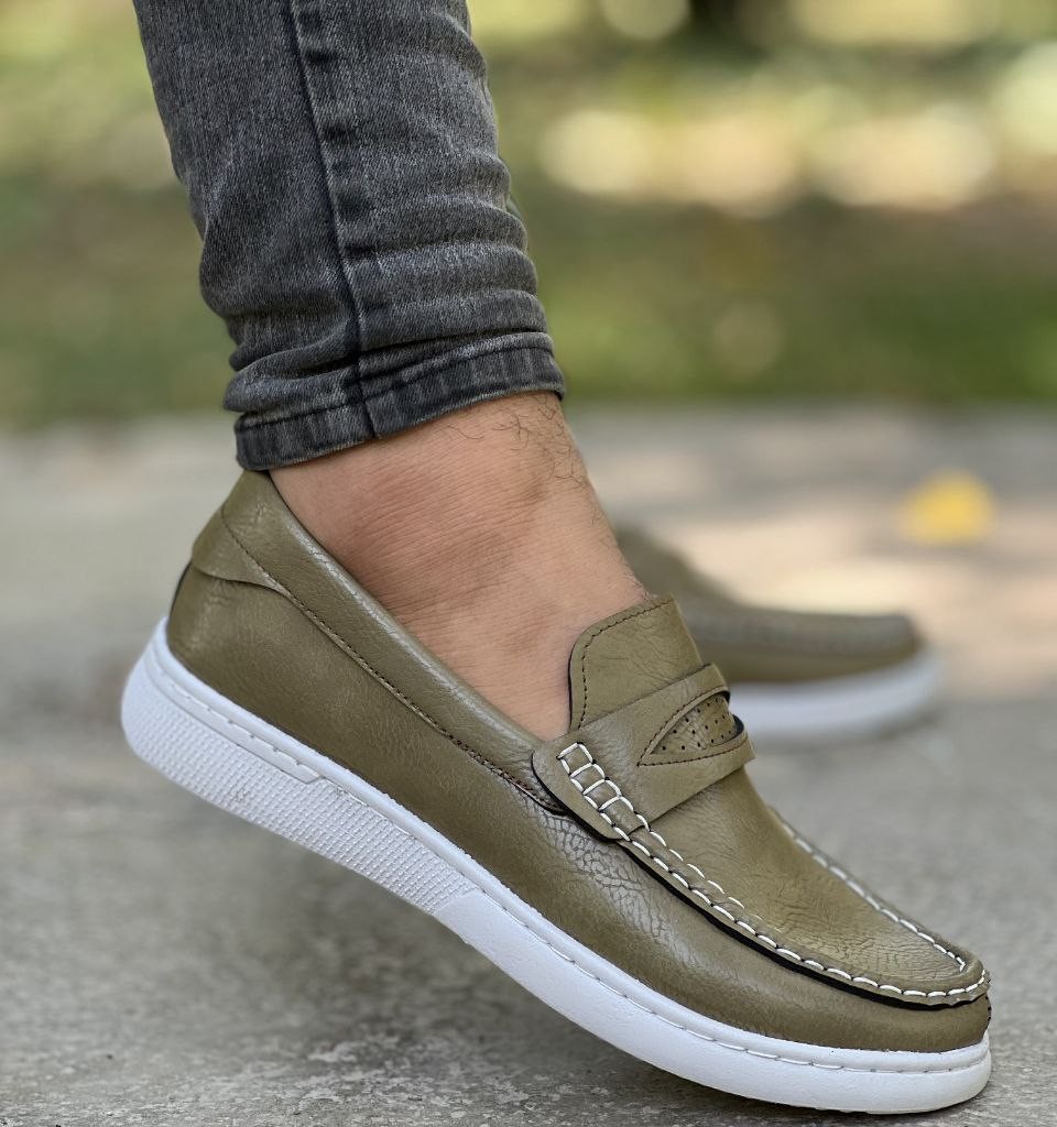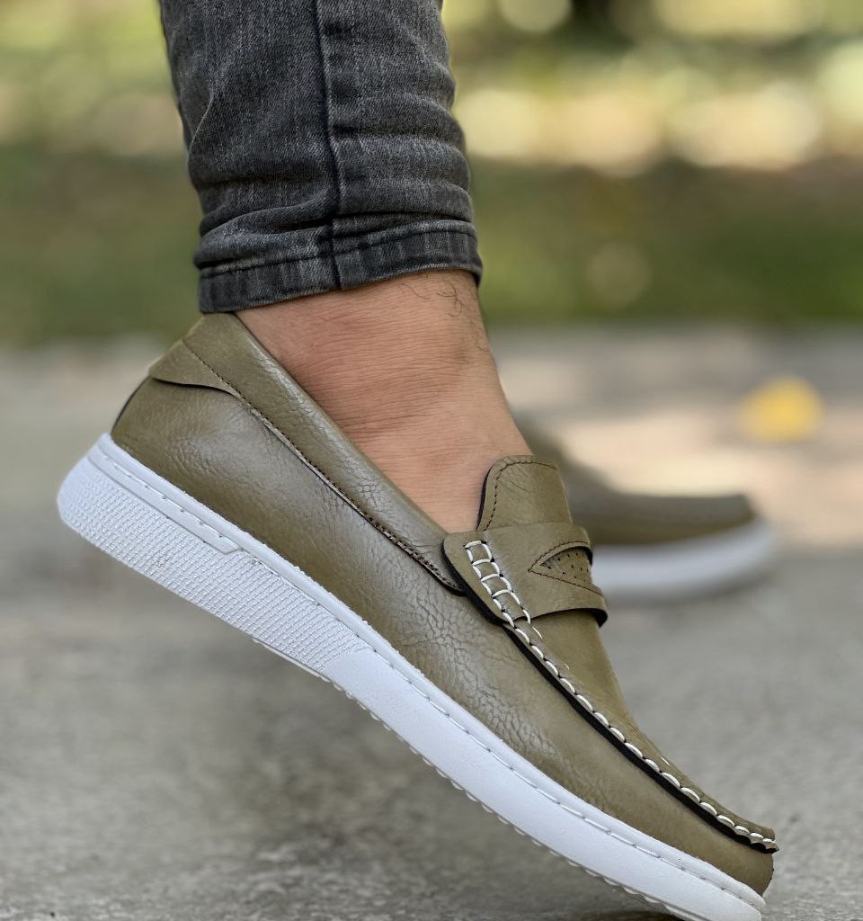 حراج فوق العاده کفش کالج مردانه پسرانه شیک و خاص رنگ زیتونی با ارسال رایگان
