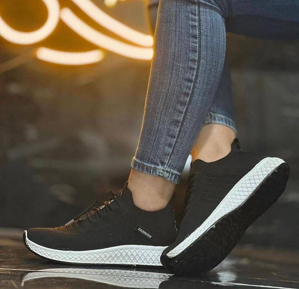 حراج بزرگ کفش اسپرت و پیاده روی زنانه جورابی مدل FASHION با دوام مشکی سفید با ارسال رایگان